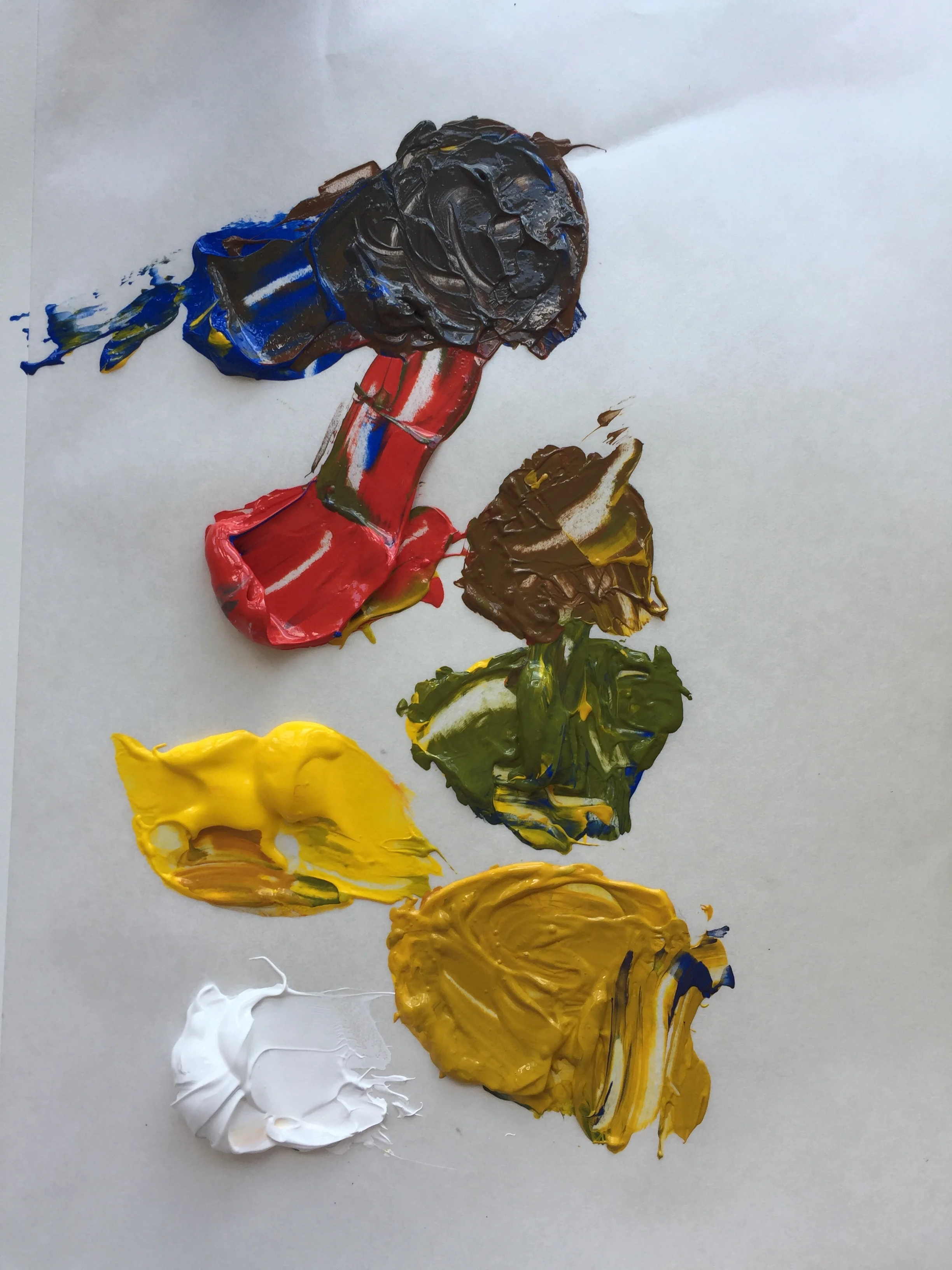 I used Blick acrylic paints -Red, Blue, Yellow, and white to paint all five pieces.