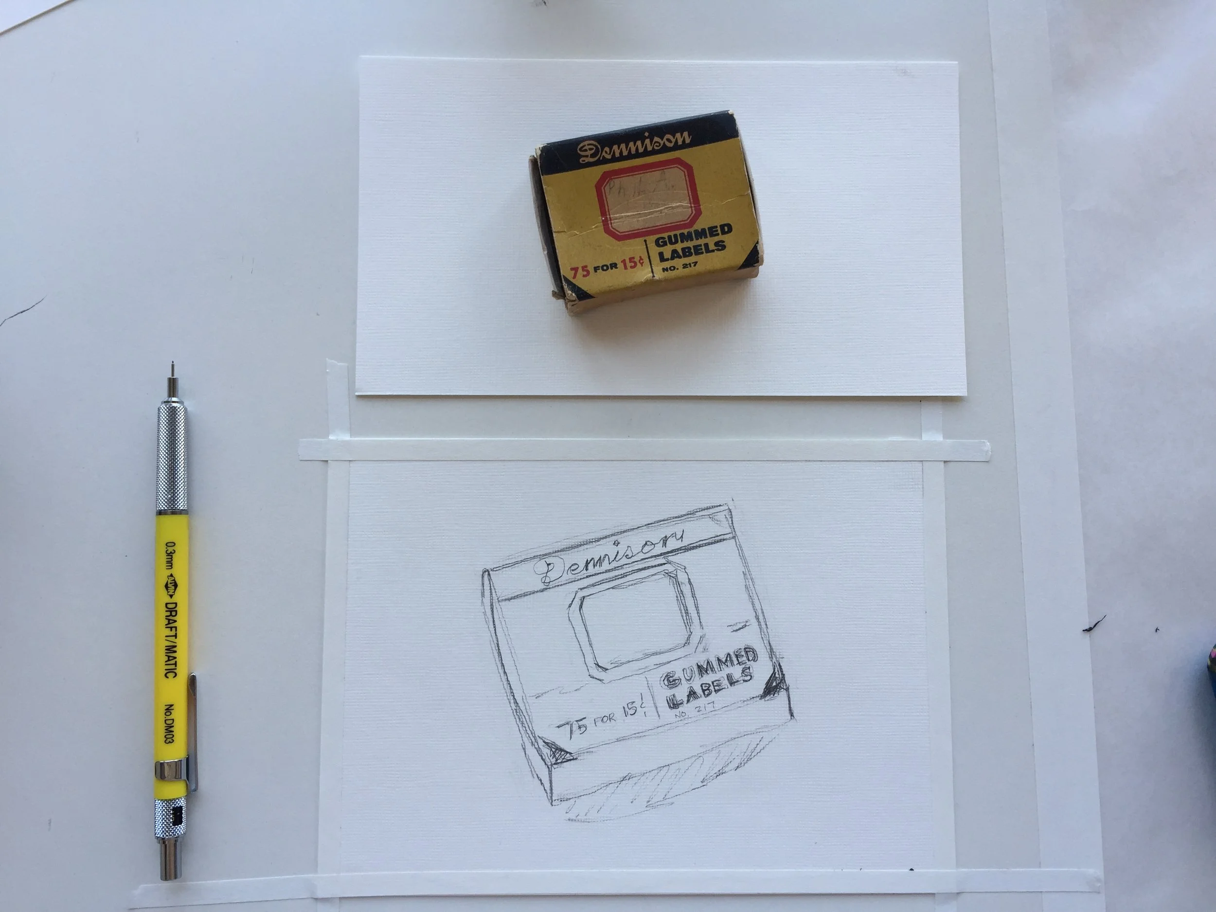 Using a mechanical pencil I sketched out each image before painting. For a couple of the pieces I painted the background first, then sketched out the image, then painted it.
