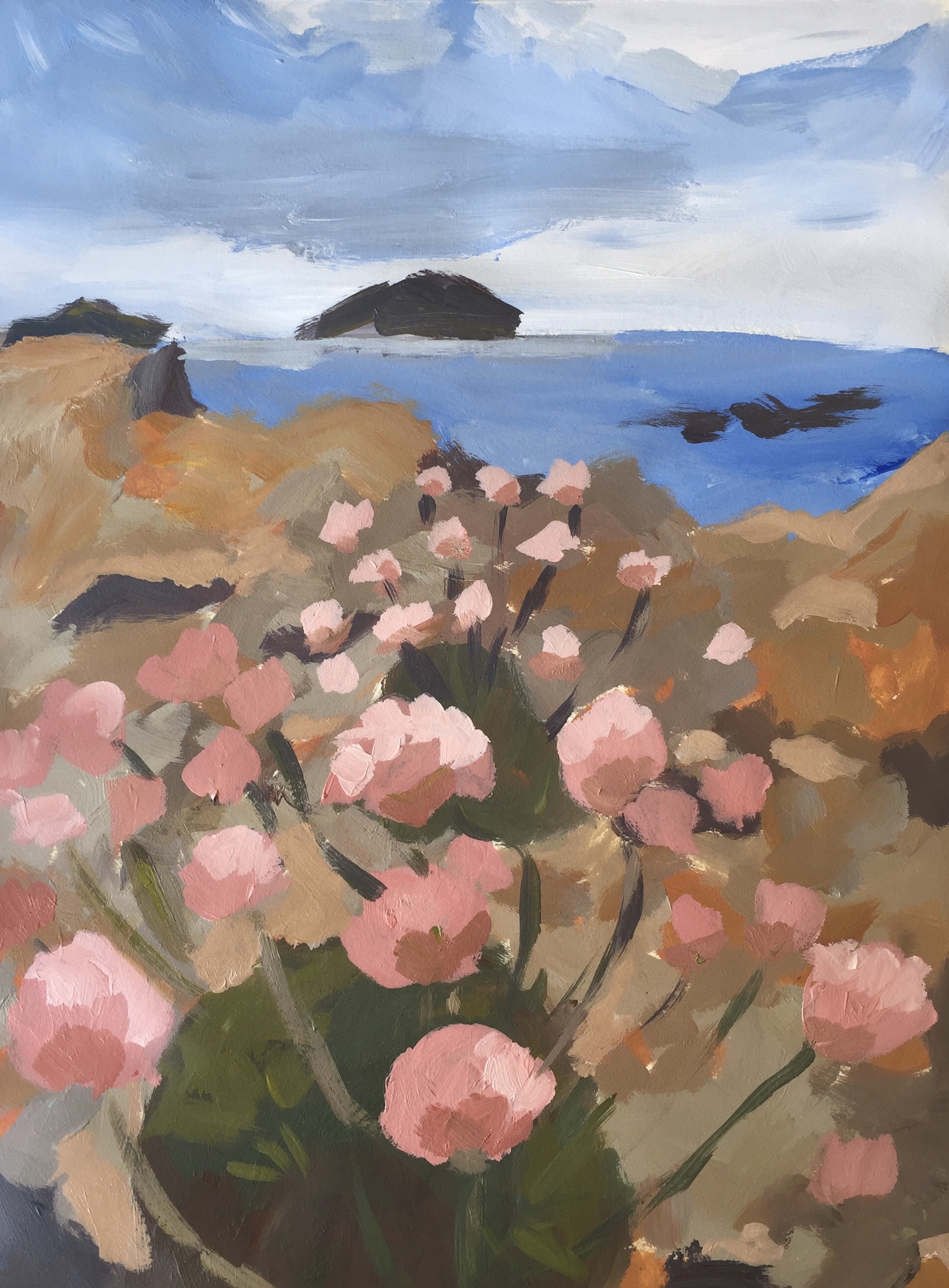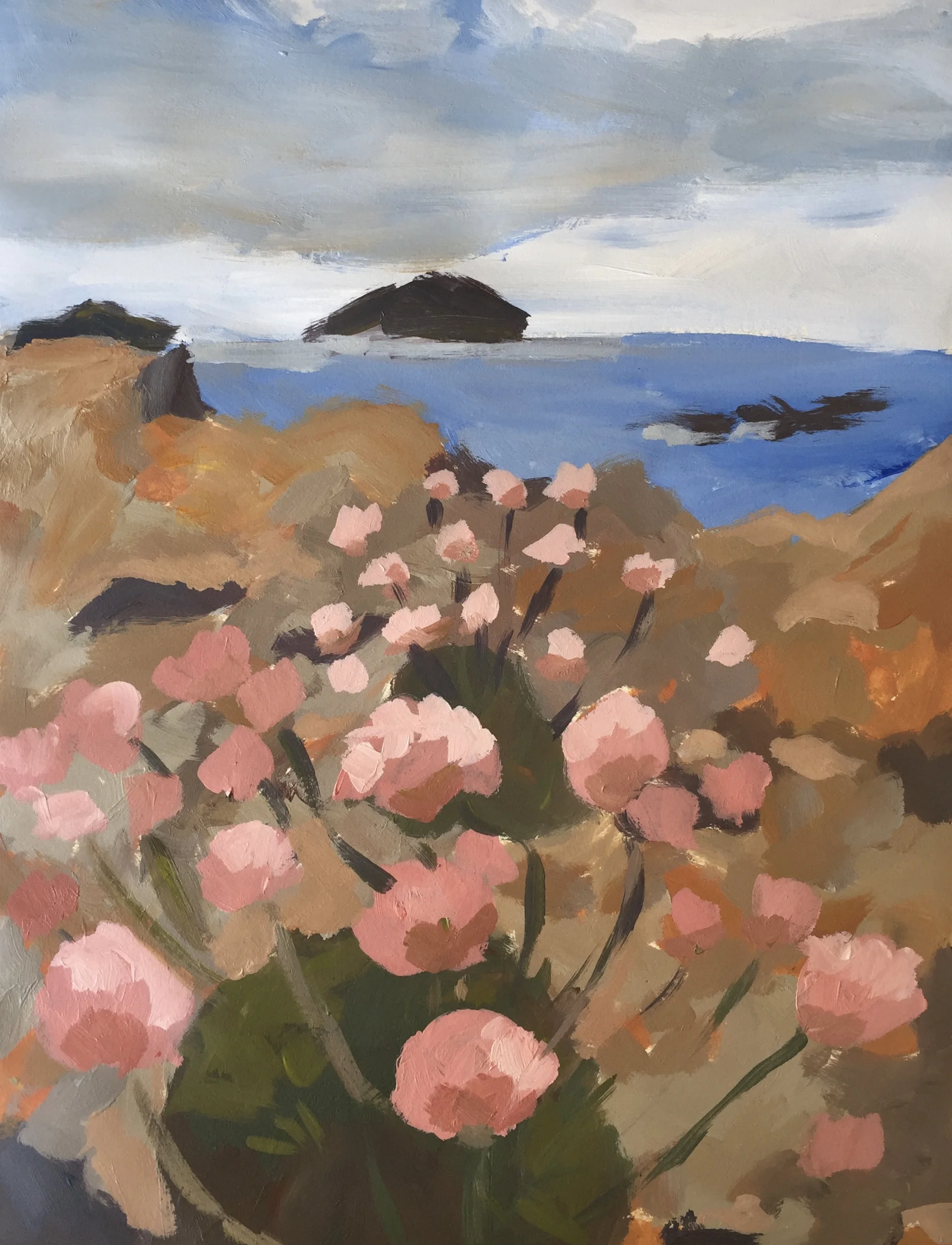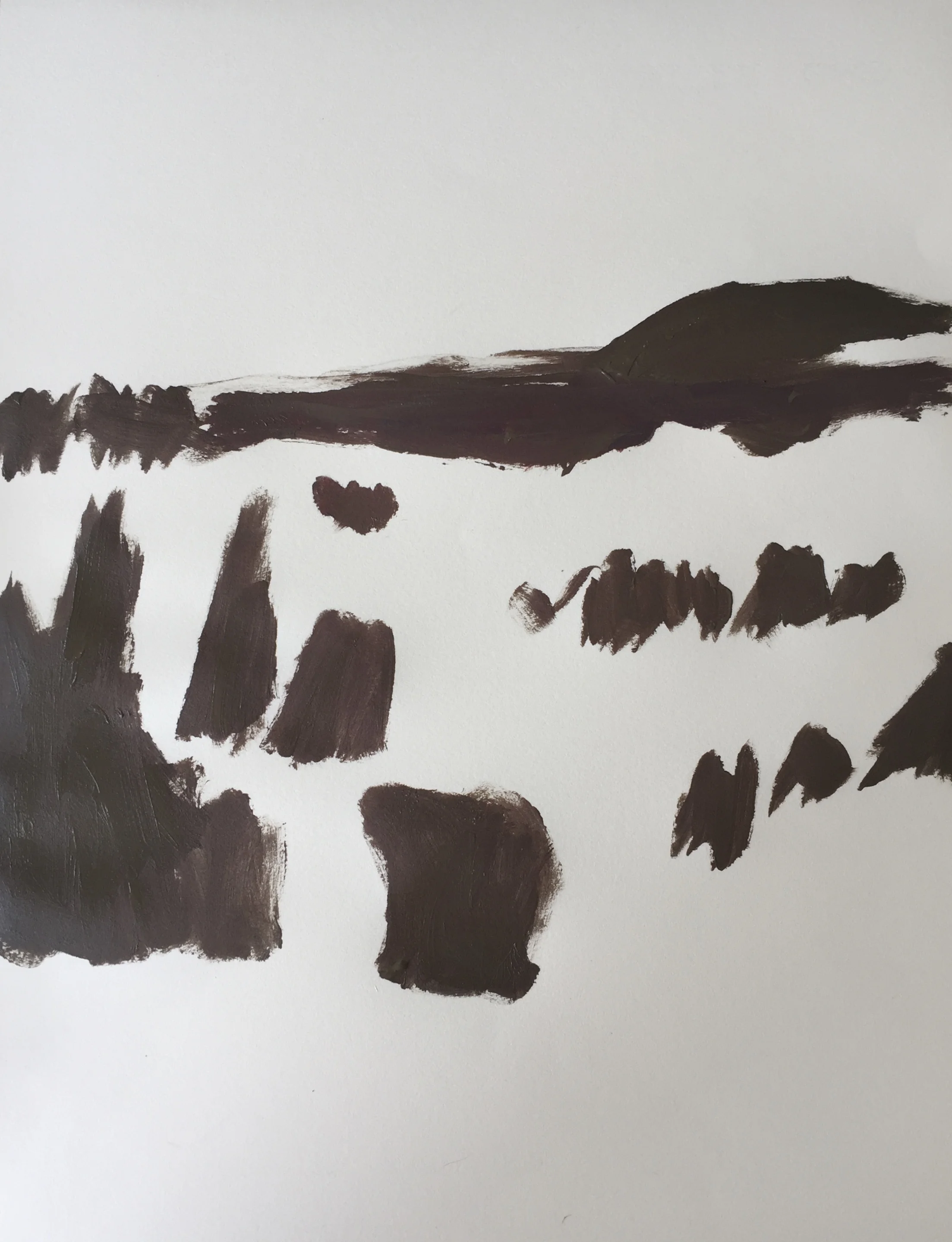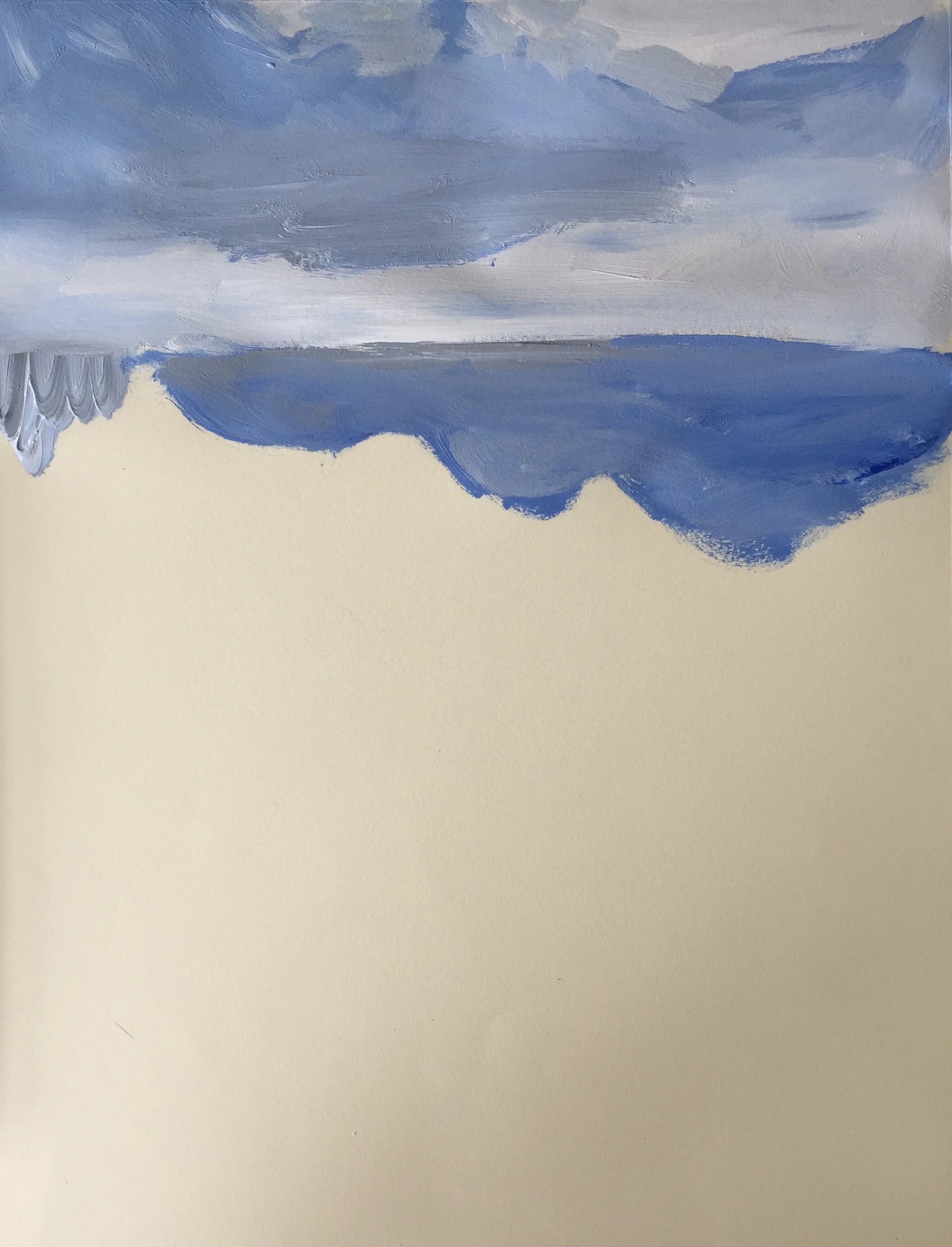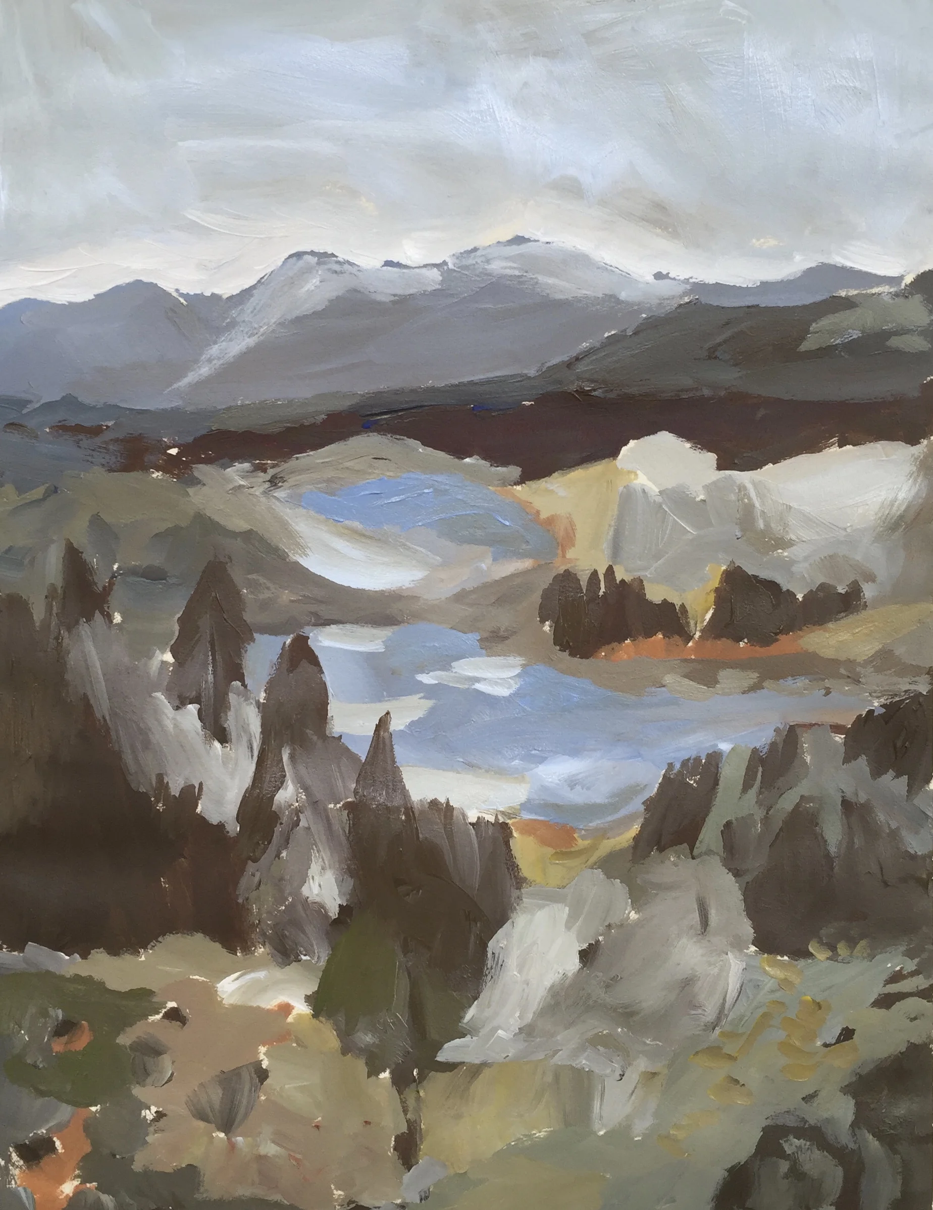 Start off by looking for the different shapes of color, blocking them in as you see them. I kept my paintings very abstract, adding very little detail. If you want more detail in your landscape painting use smaller brushes and spend more time looking for the changes in shape/value/relationships.