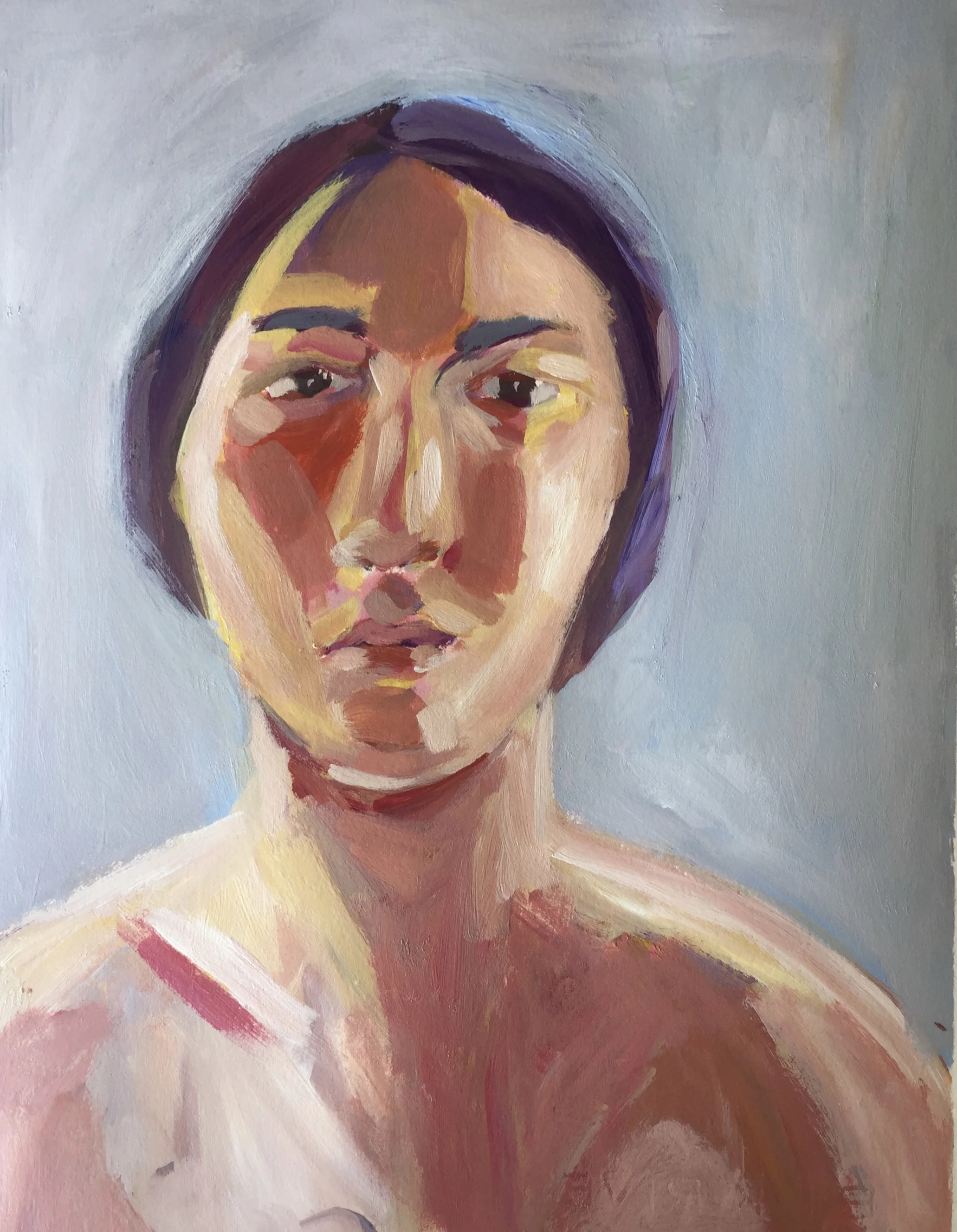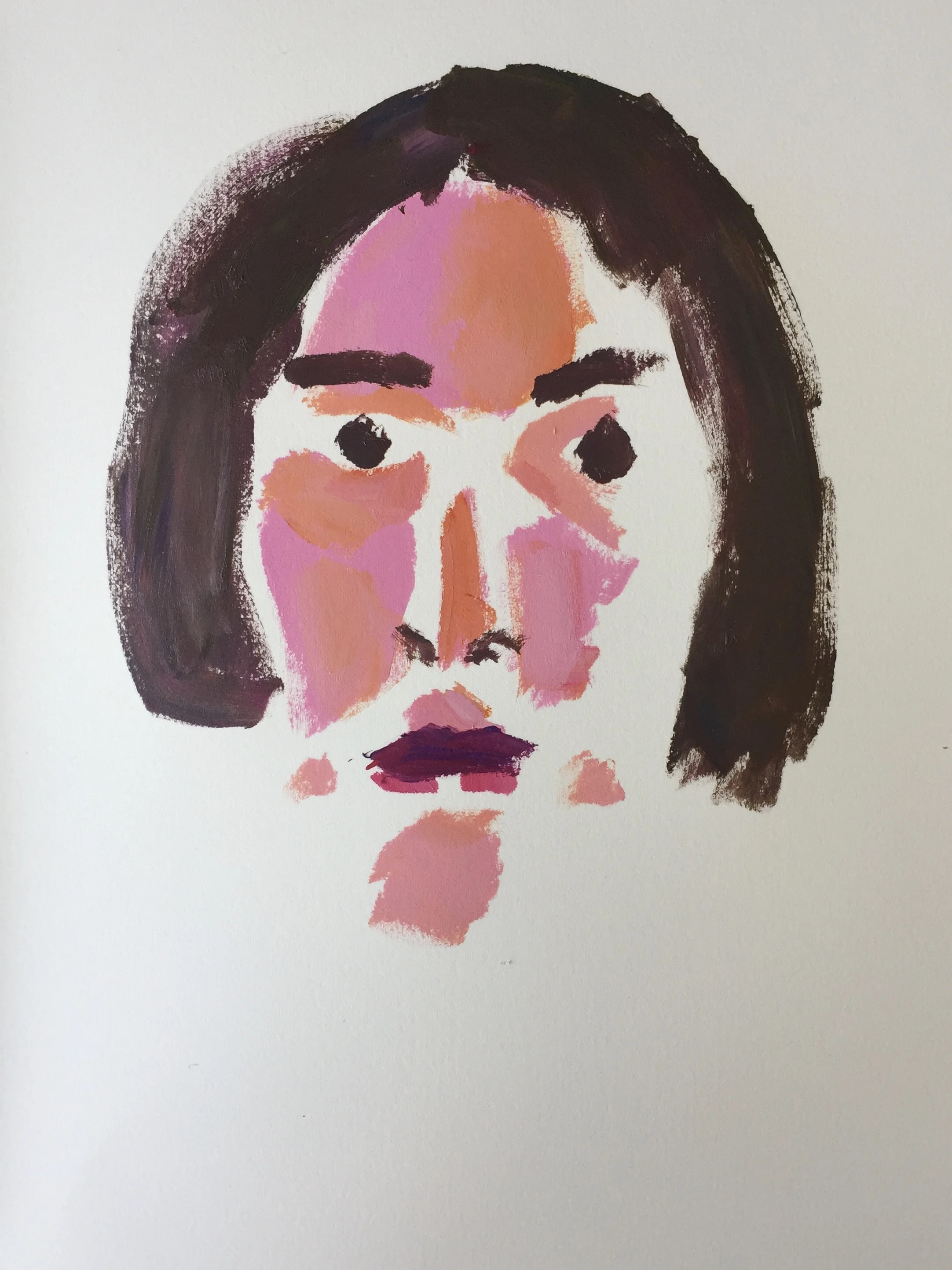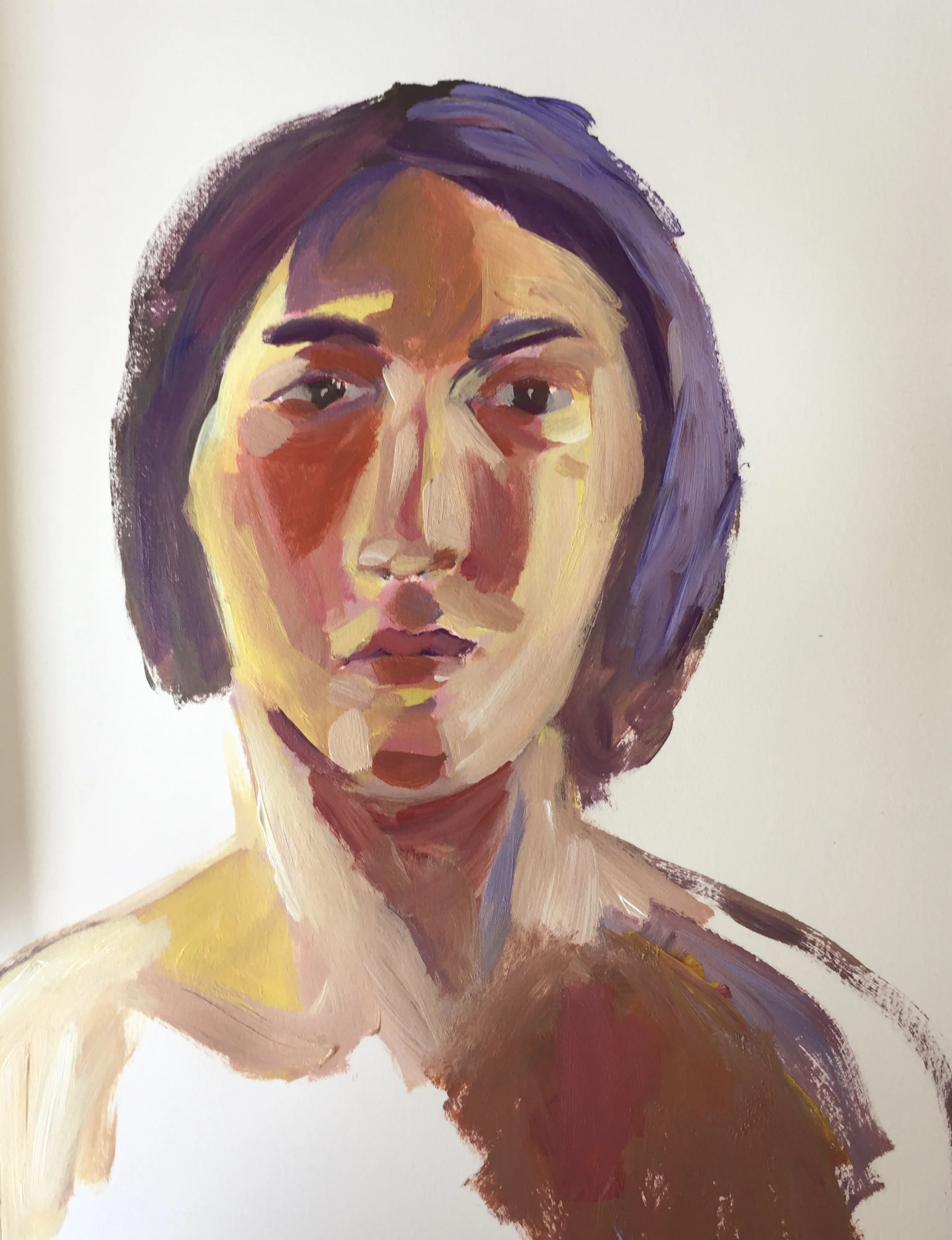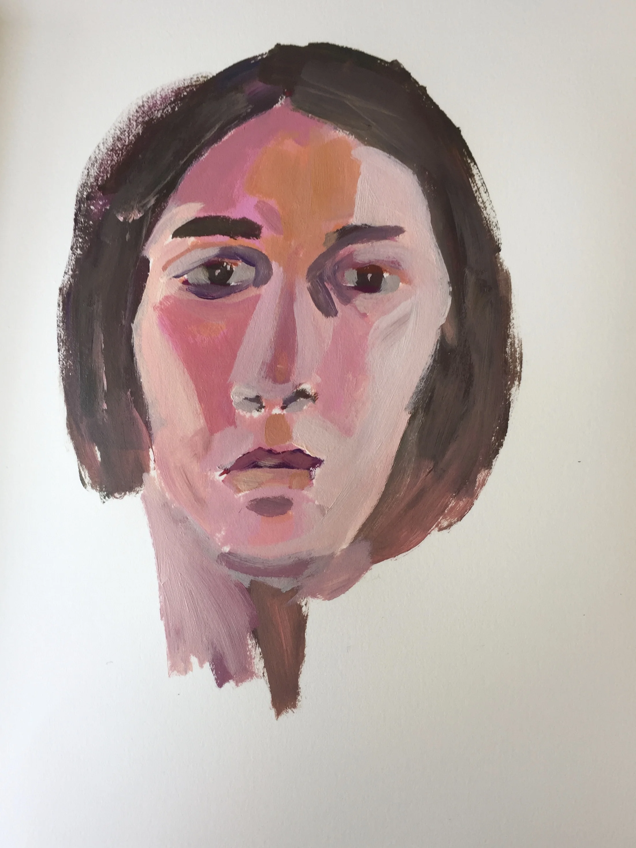 For both portraits I did not sketch out the portrait to begin with, instead I just started putting down organic shapes of color, using a medium flat brush.