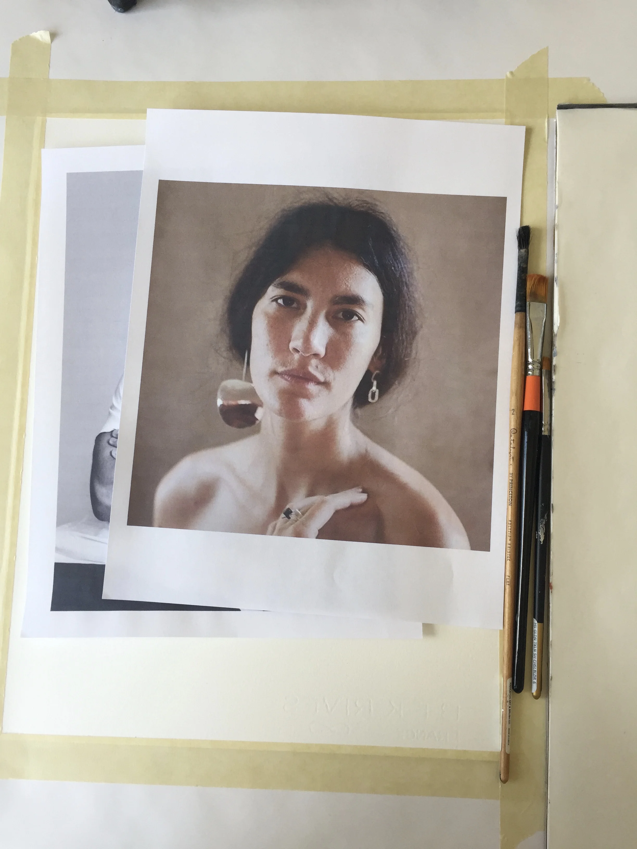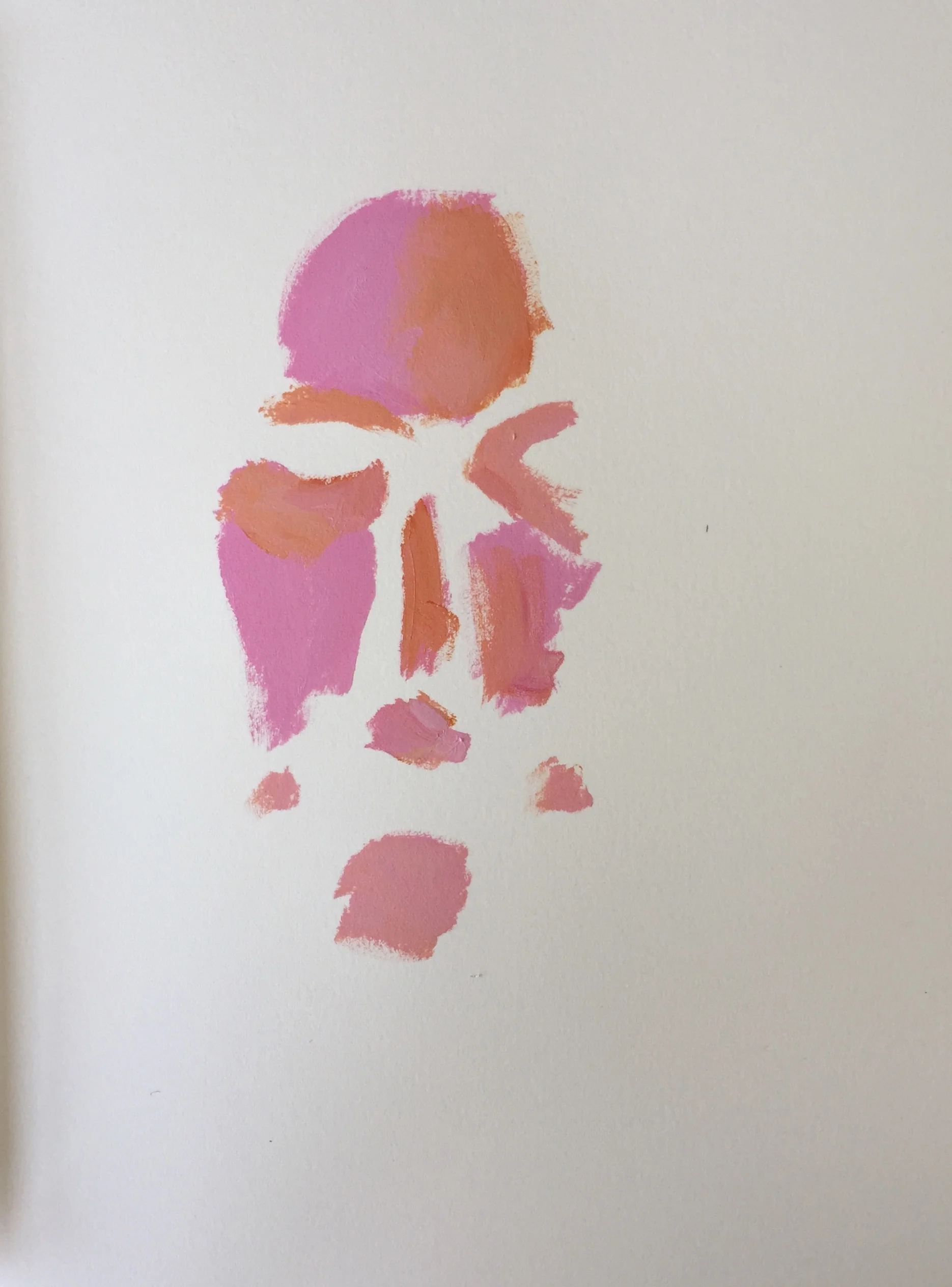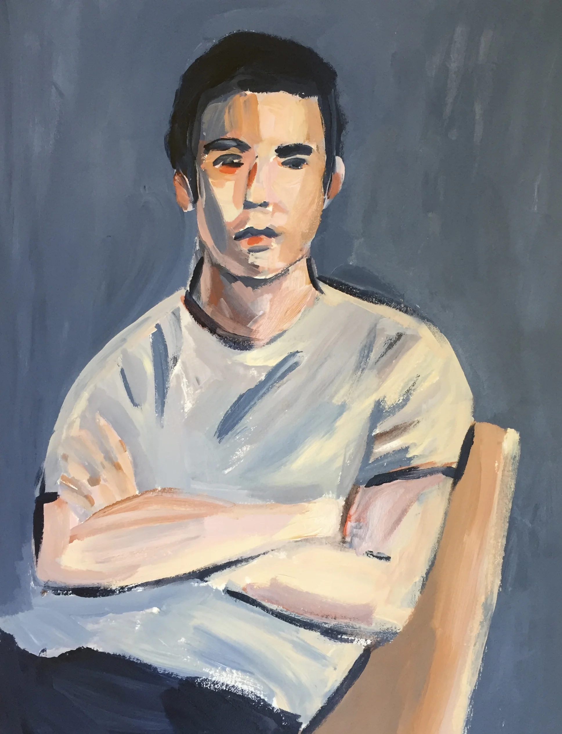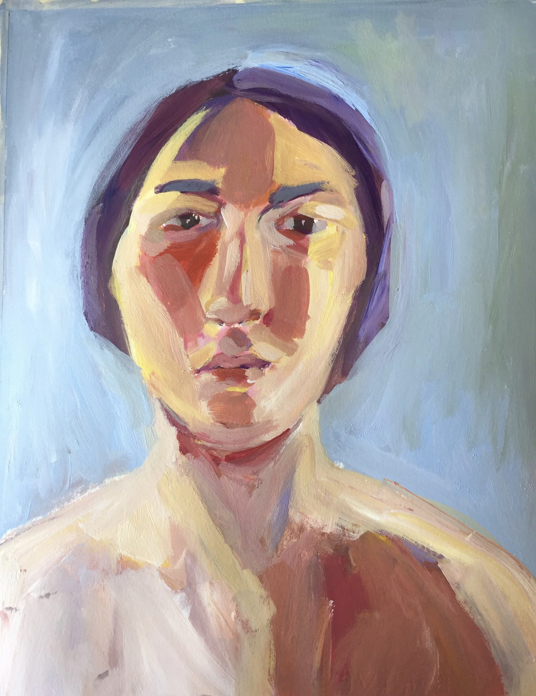 For both portraits I did not sketch out the portrait to begin with, instead I just started putting down organic shapes of color, using a medium flat brush.