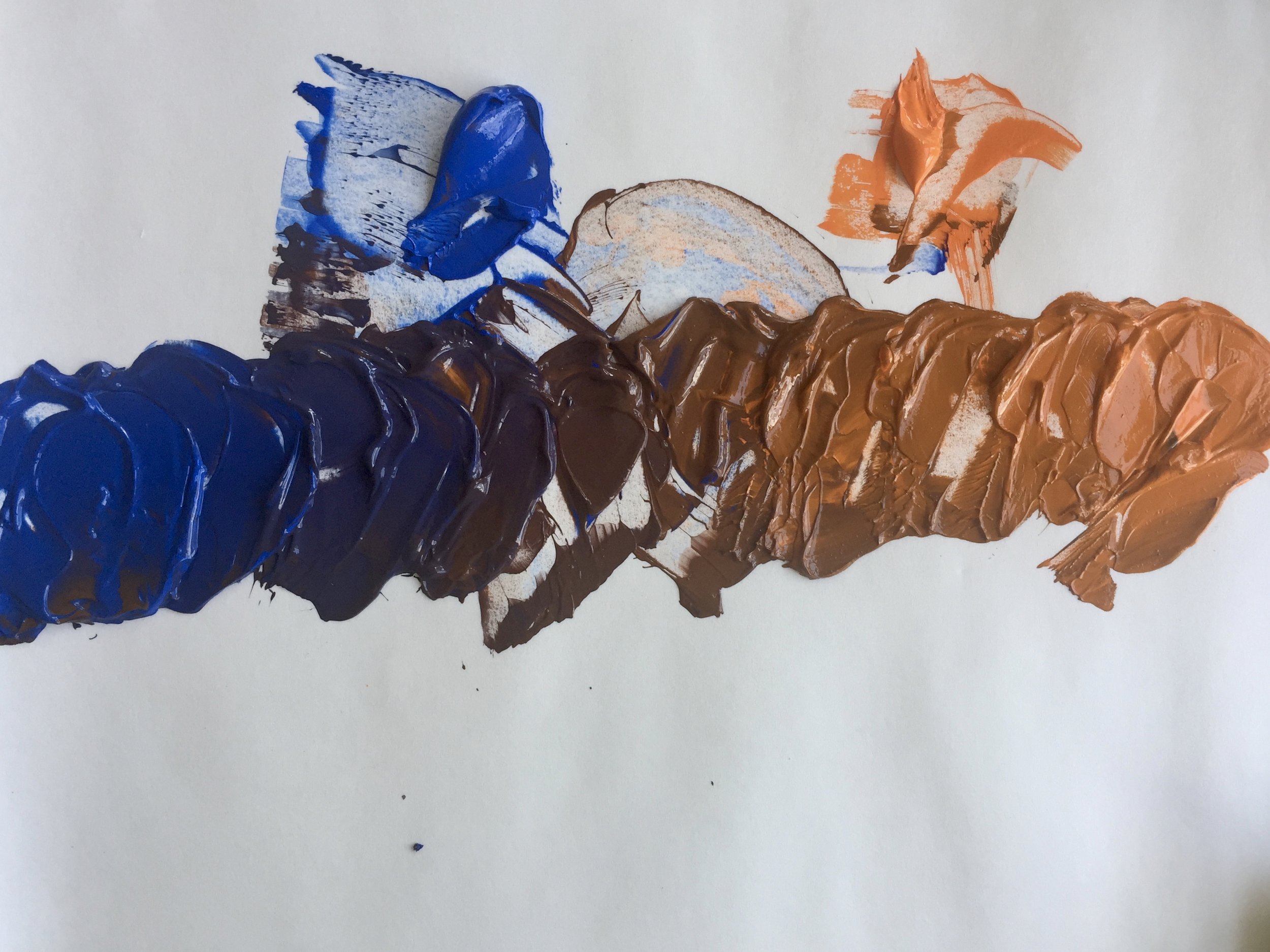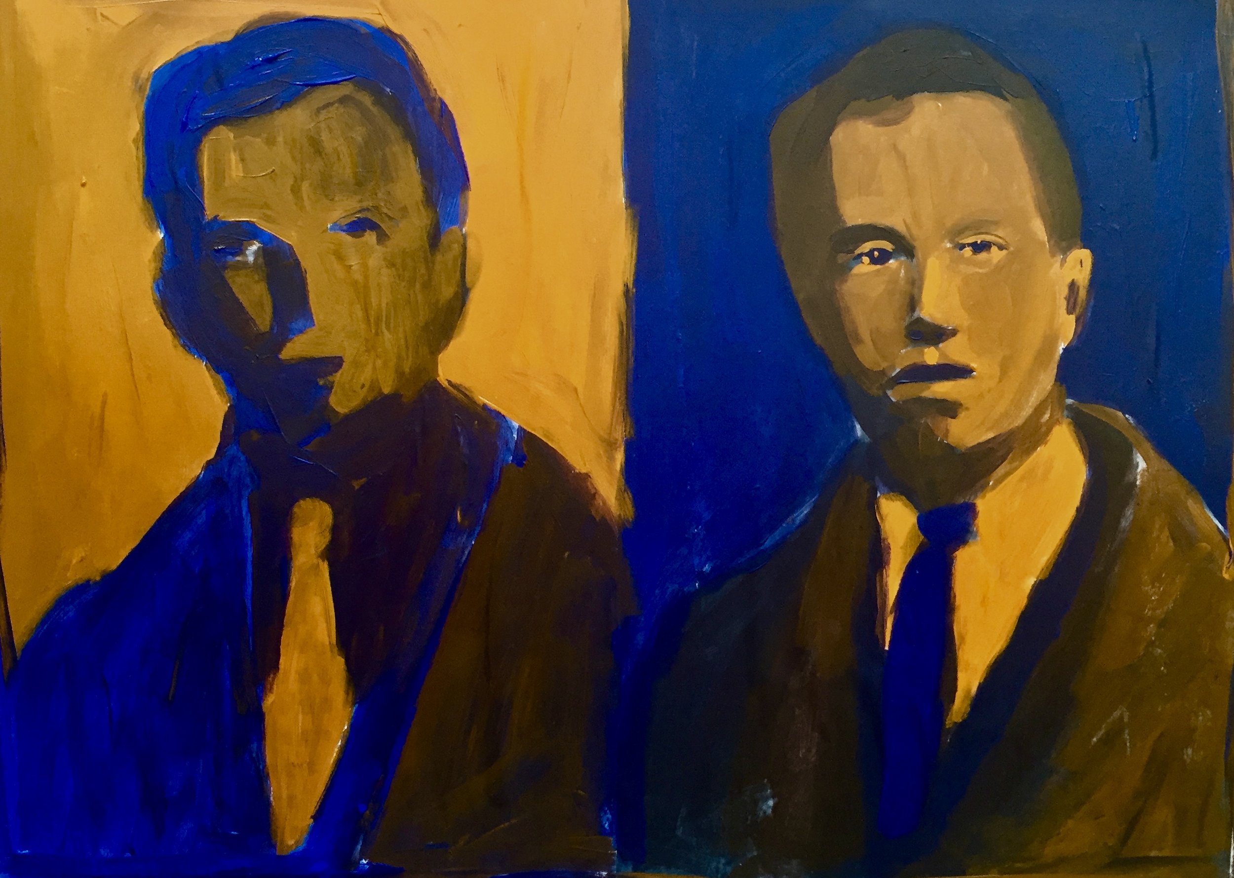 For this exercise I used Blue and Orange, my two favorite colors. You can use Green + Red, Yellow + Purple, or Orange + Blue. I also used a regular portrait, glued down to paint over, and an inverted image of the same portrait glued down next to it. On the normal portrait I used the orange for the lightest color and for the inverted image I used blue for the lightest color. You can use the same color as the light for both, or change it up as I did. I feel that these kind of exercises help keep your brain stimulated.