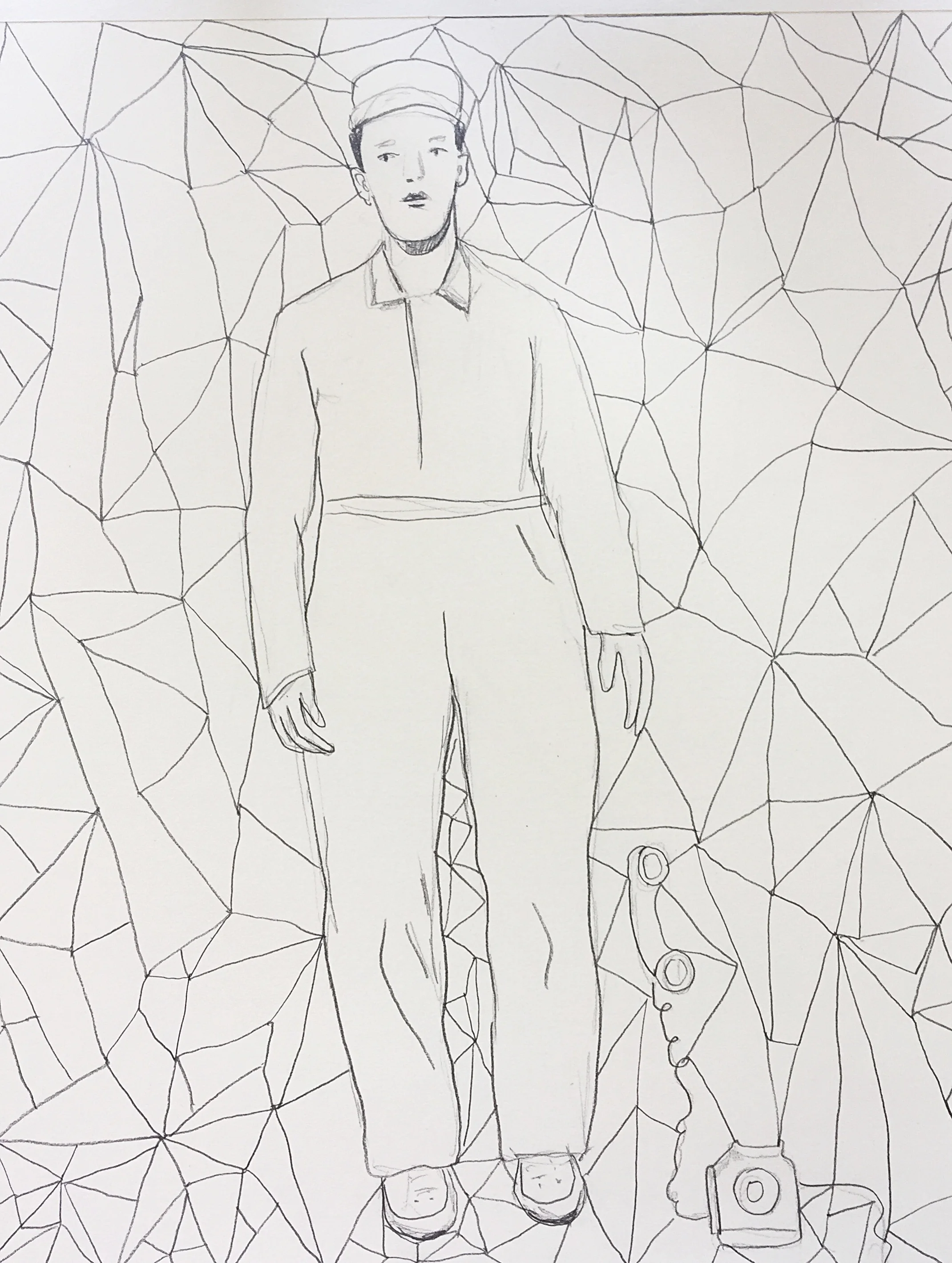 Before I added the dots I used a reference image of a man dropping a phone and sketched it on my paper, I then added the dots. Once all sketched out I decided to go ahead and add some gouache. You could do a whole piece with this way of drawing and skip a focal image, or try one of each. I actually really love this technique and look forward to doing it again and again.