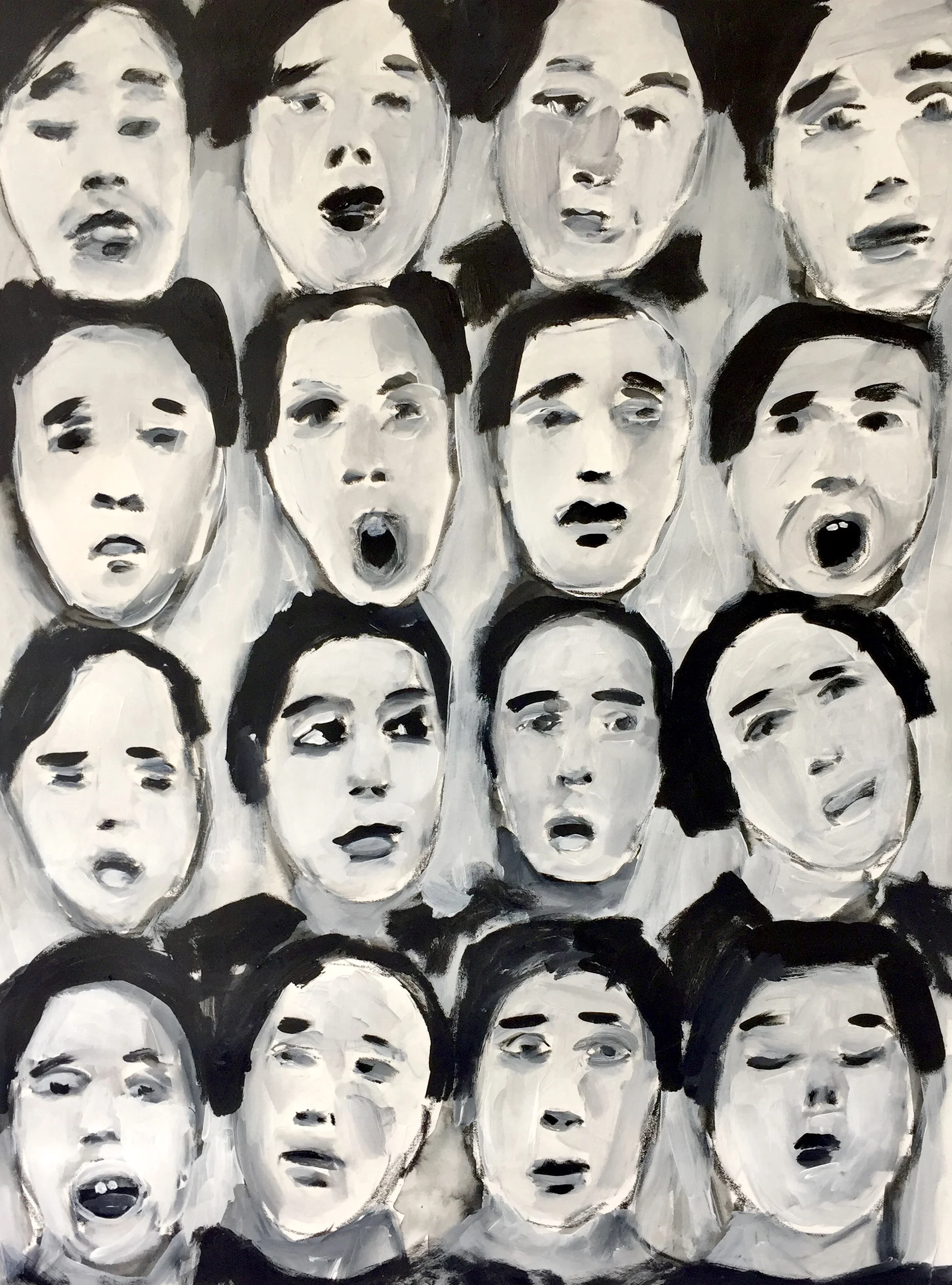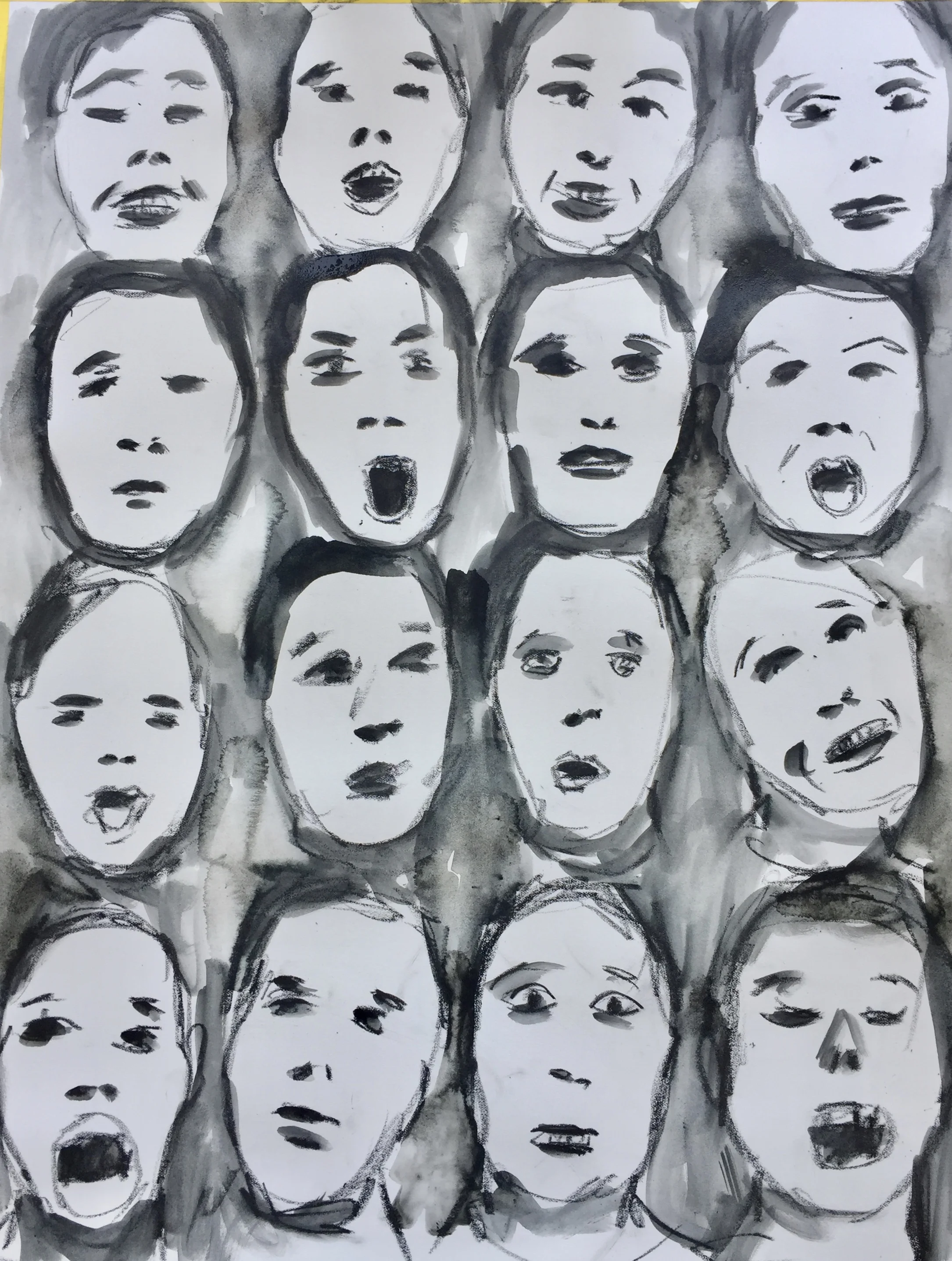 I love Bjork and I love faces and I love drawing.... so why not draw Bjork faces? Or any faces with lots of expressions. How lucky are we that when we need a certain image, say a face, with a certain expression, all we have to do is look online and there we will find way more than we asked for. On Pinterest you can find so many faces with different expressions for reference. Find a set you love (or take multiple self-portraits of yourself making different faces) and use it to draw, then paint, multiple faces on one sheet of paper. Much like the drawing of 100 faces, but this time focusing on expression and then painting each. I used a Stabilo pencil to loosely sketch each face out. I then used gesso, titanium white, and carbon black to paint the faces. I found this to be a really fun exercise, hope you do, too! You can combine this one with other exercises, like using two colors or painting with the primary colors or keep it simple and just use black and white.