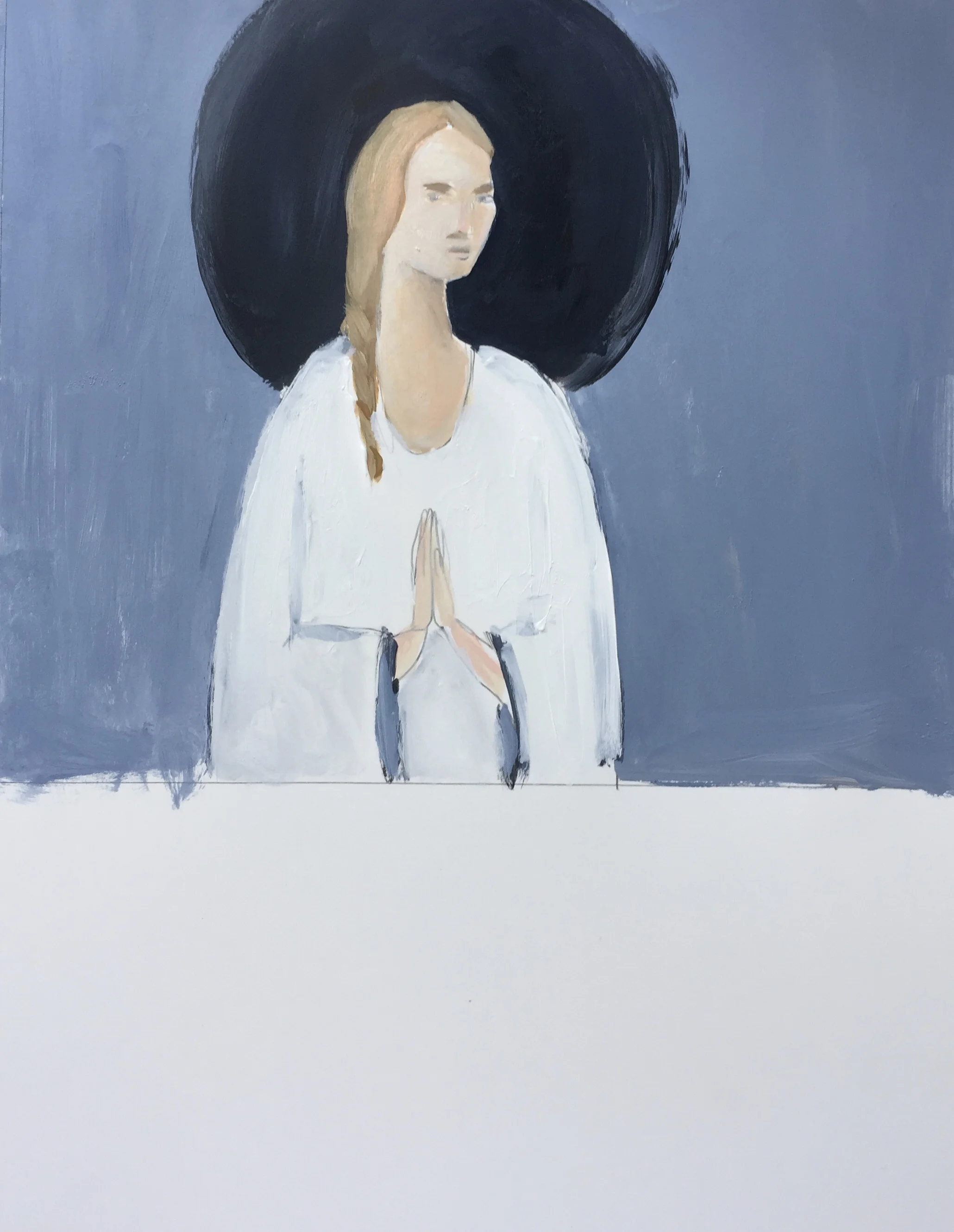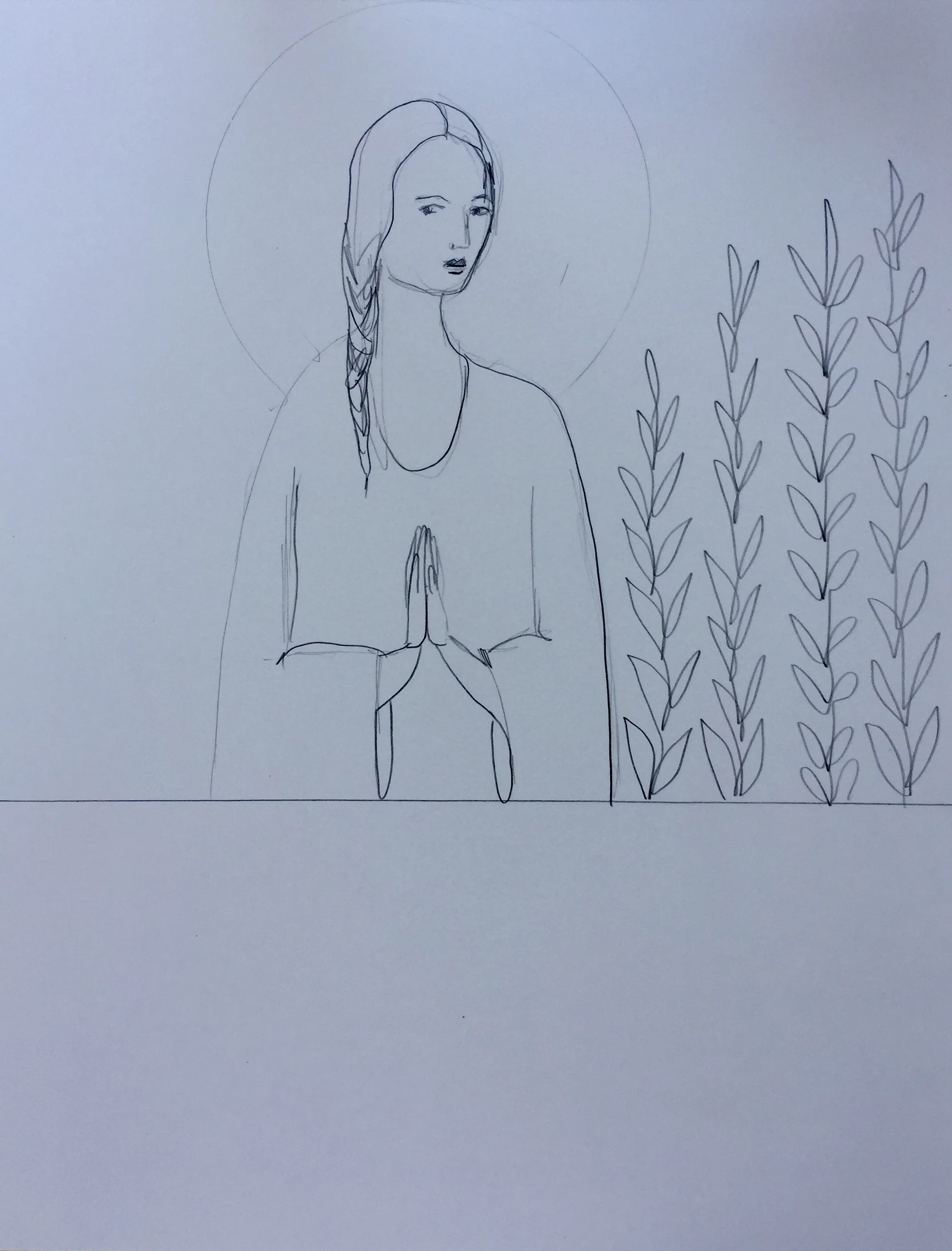 I worked on 11" x 14" cotton paper. I used an older painting I did for reference. Sometimes it's just nice to do this when you have a painting that you have done and felt connected to it and wish to recreate it. For my paint I used Quinacridone Nickel Azo Gold, Raw Umber, Payne's Grey, Portrait Pink, and Titanium White.