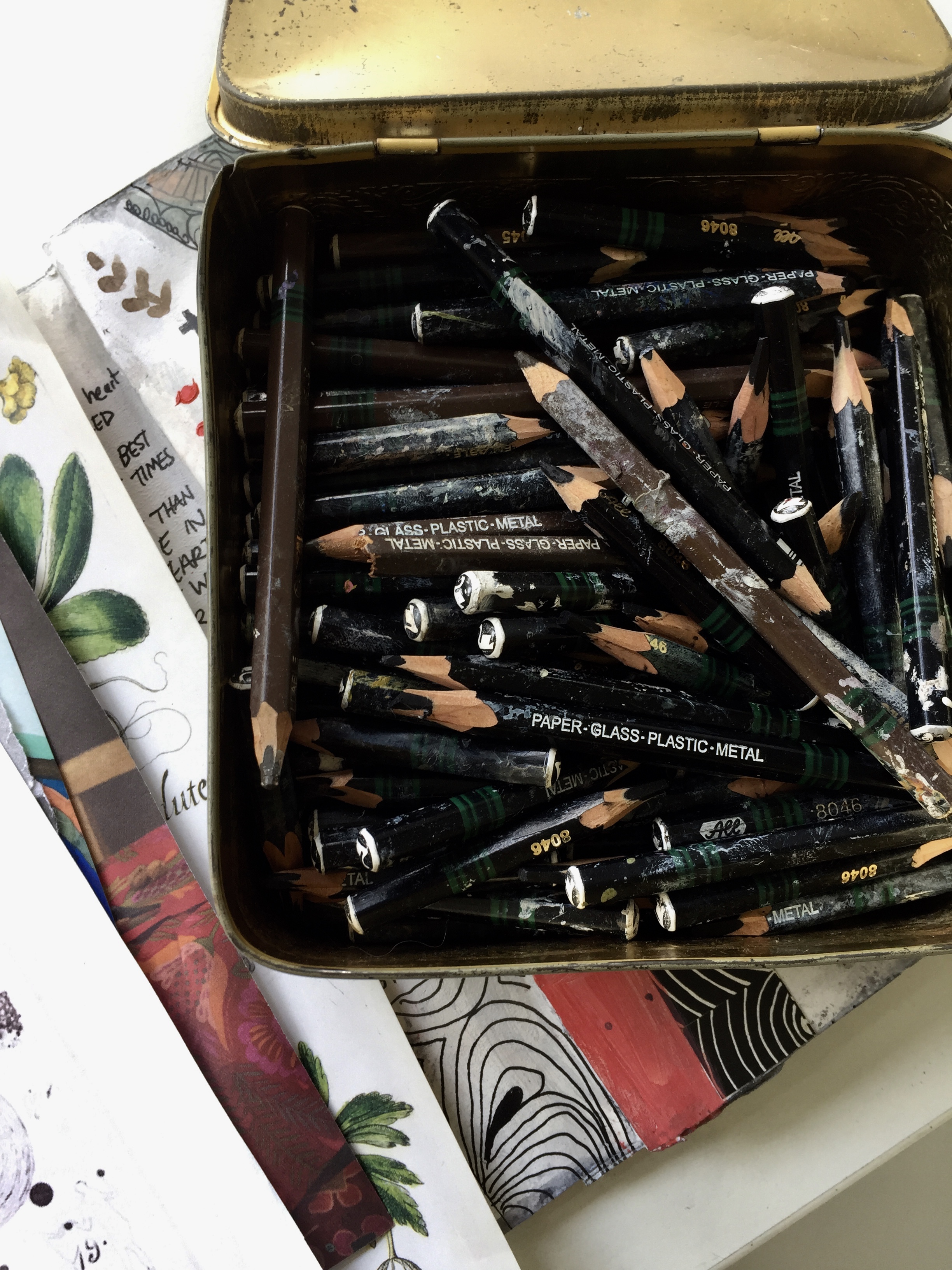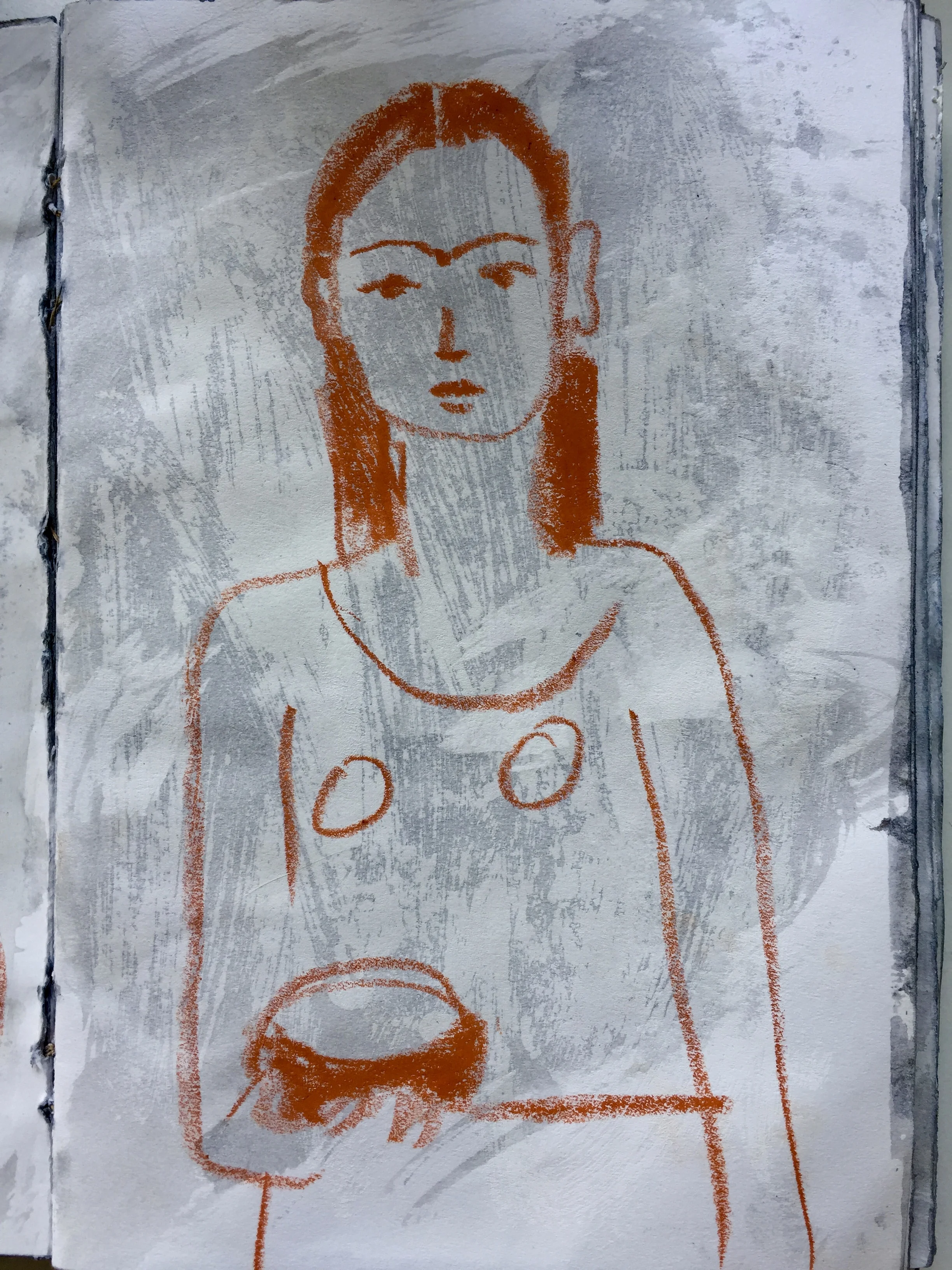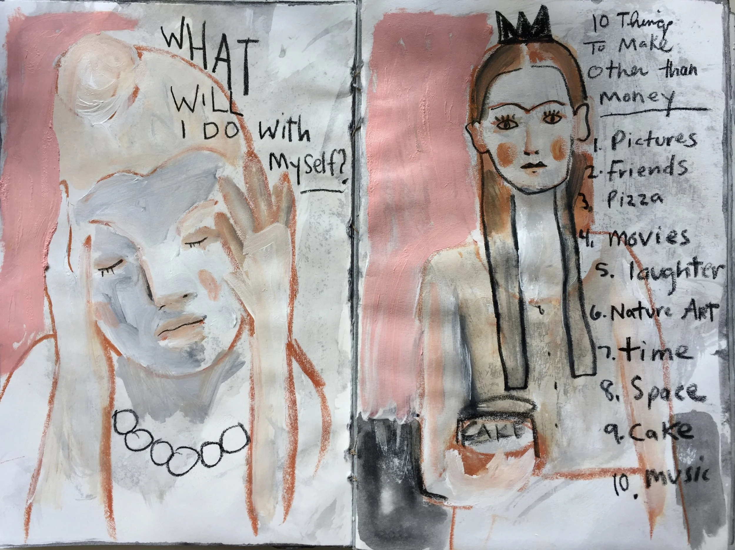 It's like one of those days where you have no plans ahead of you, just a handful of complaisant hours to do whatever you want to do. That's what this journaling exercise is like. No rush, no worries. Grab a couple supplies and start adding marks to your journal. You can use paint, crayons, ink, collage. Whatever you want! I started off with a page that already had a piece of collage glued down, from there I added lines, paint, words, and kept going until I felt happy with the page. For the second spread I started with a water soluble crayon and started drawing, then added paint and words. Journaling like this can open creative doors you didn't even know existed, all you have to do is show up and see what happens.