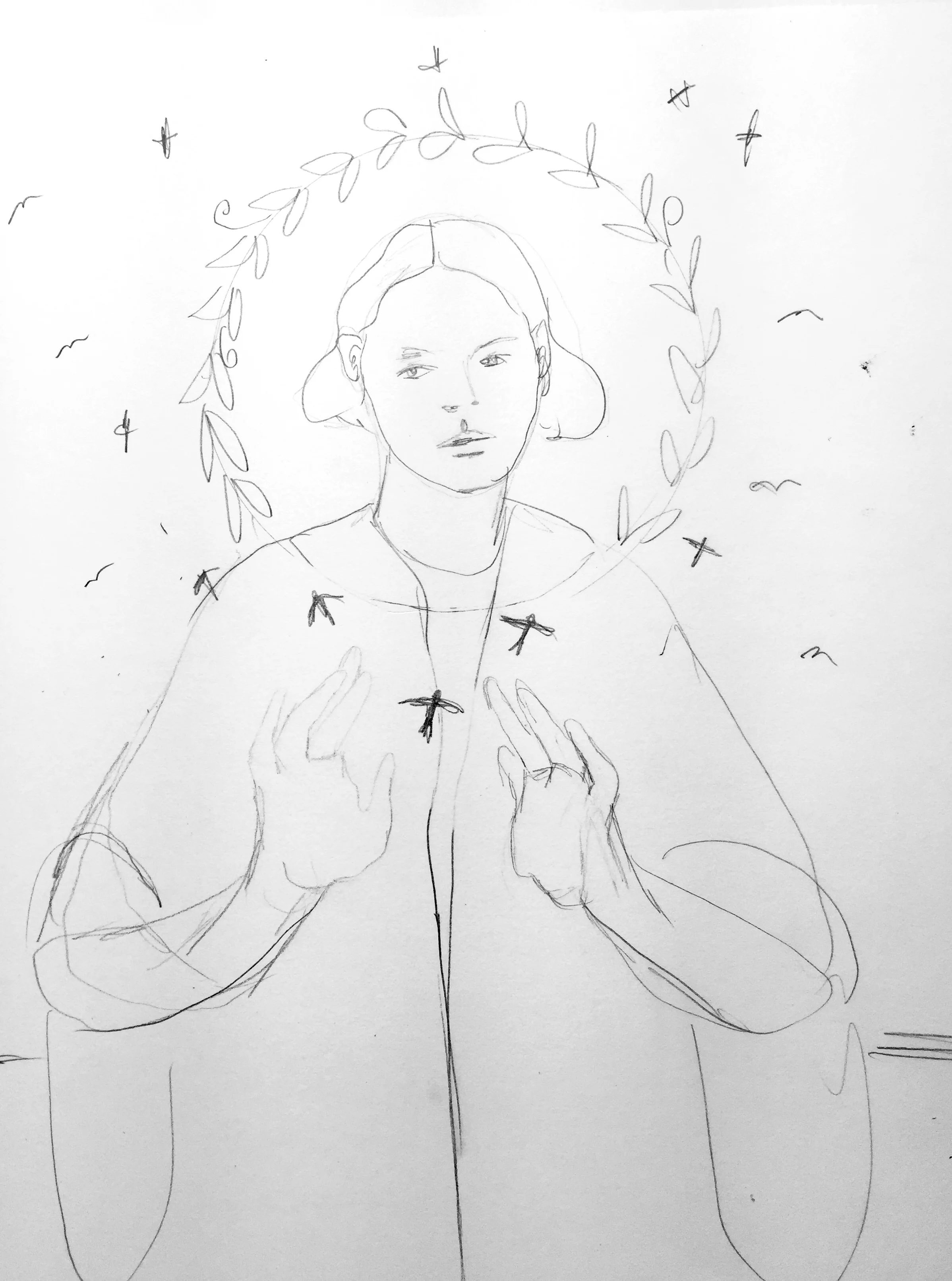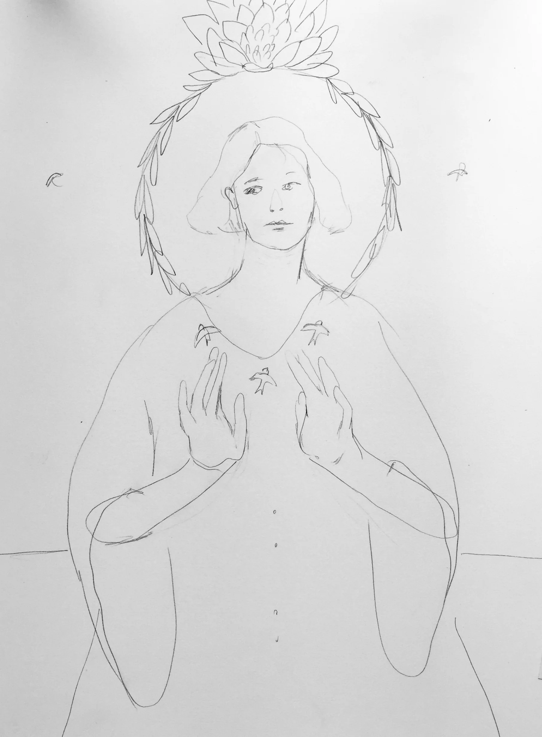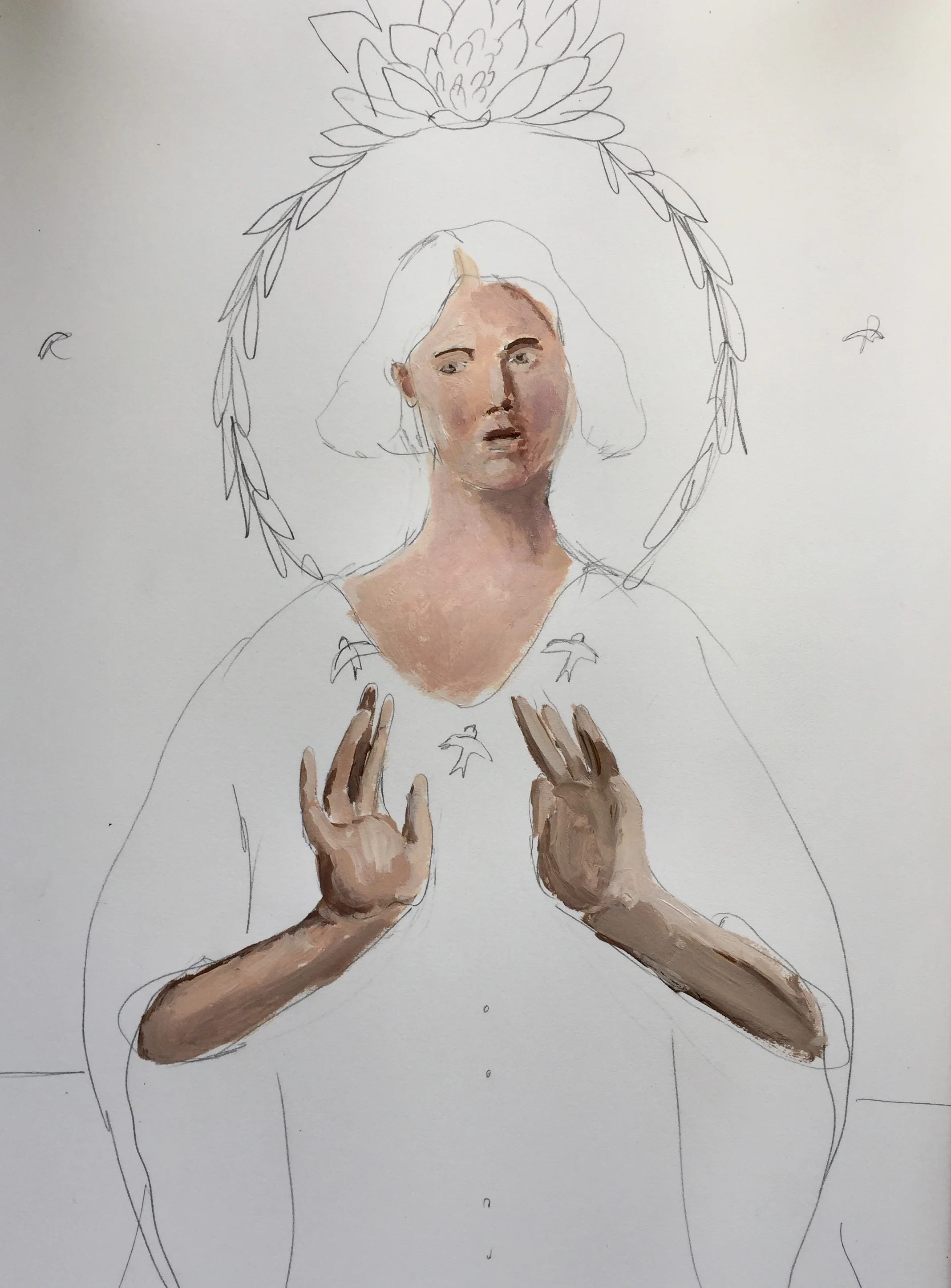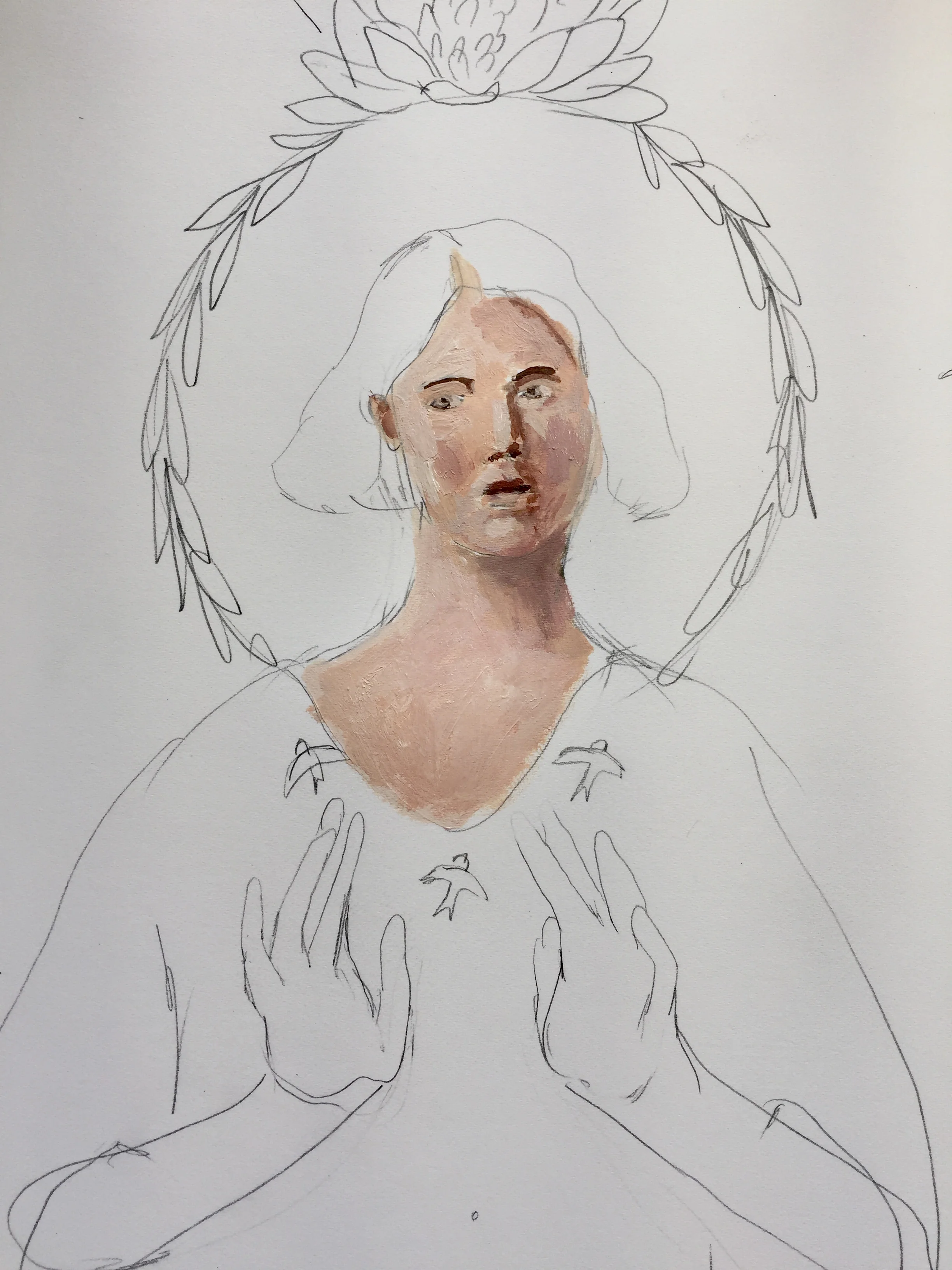 Like the lesson on painting with the primary colors, I start off with a sketch, but this time I wanted to make it a piece that felt more like my work. While the other painting was more about taking any reference image and using the primary colors to paint it, this lesson is about creating a piece of work that feels like yours. Using multiple reference images that you love, put together a painting that reflects how you feel or who you are or what you want to say.