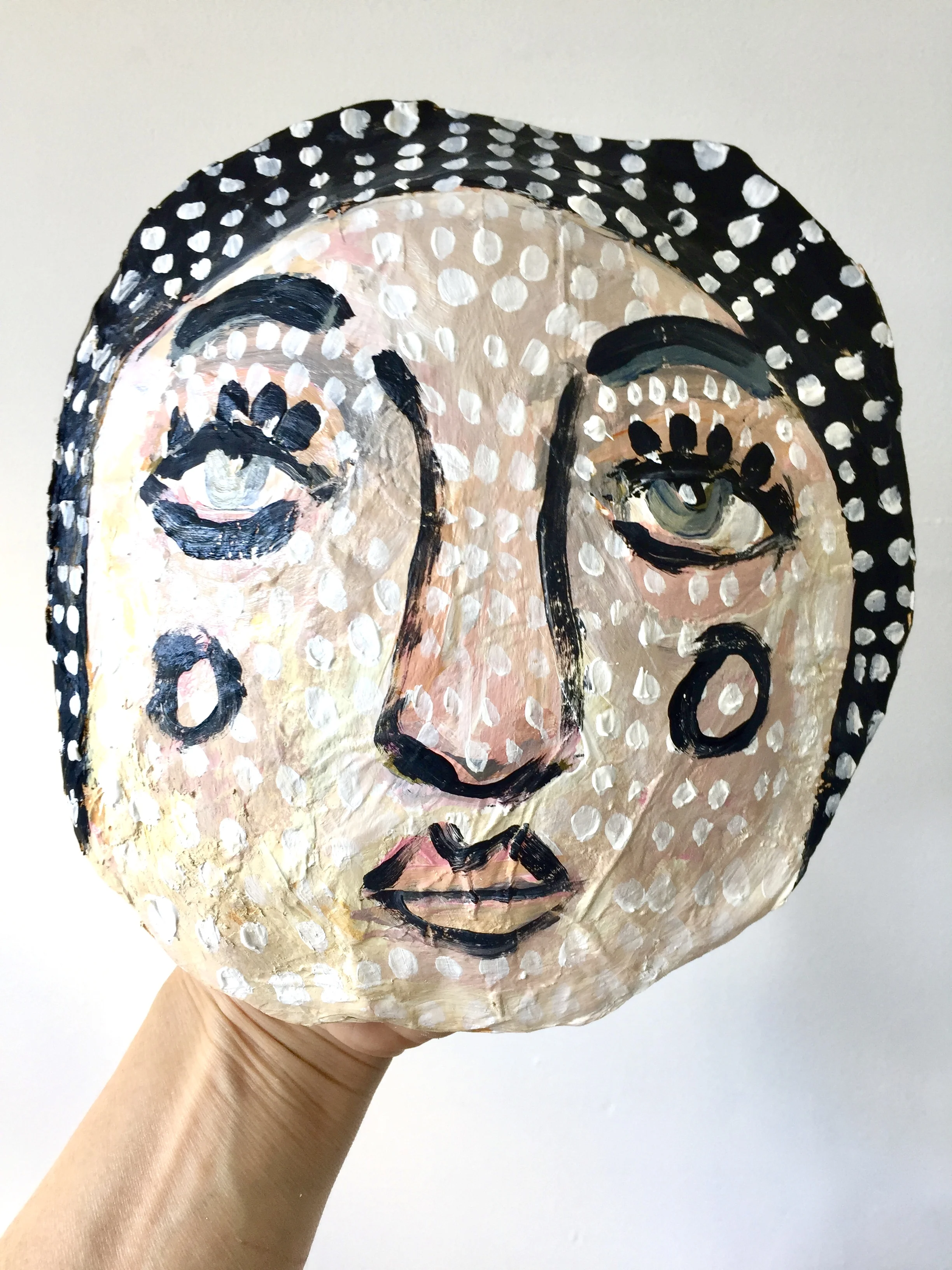 Paper-mâché can be used to create a simple mask like I create here, or elaborate life size pieces of work. At one time it was used instead of wood for ornate pieces of architectural work to save money. I feel that the imagination is the limit with such a material.