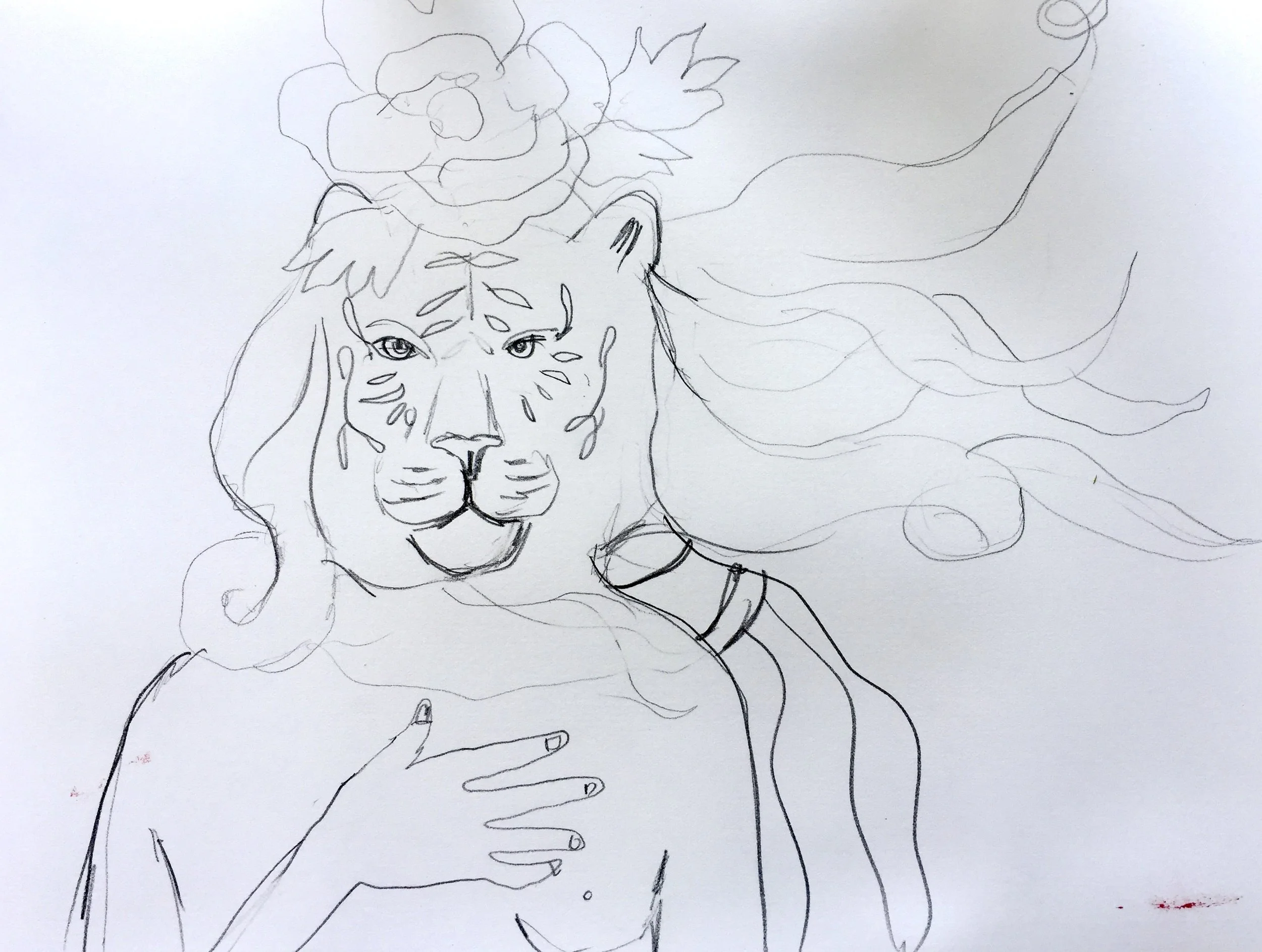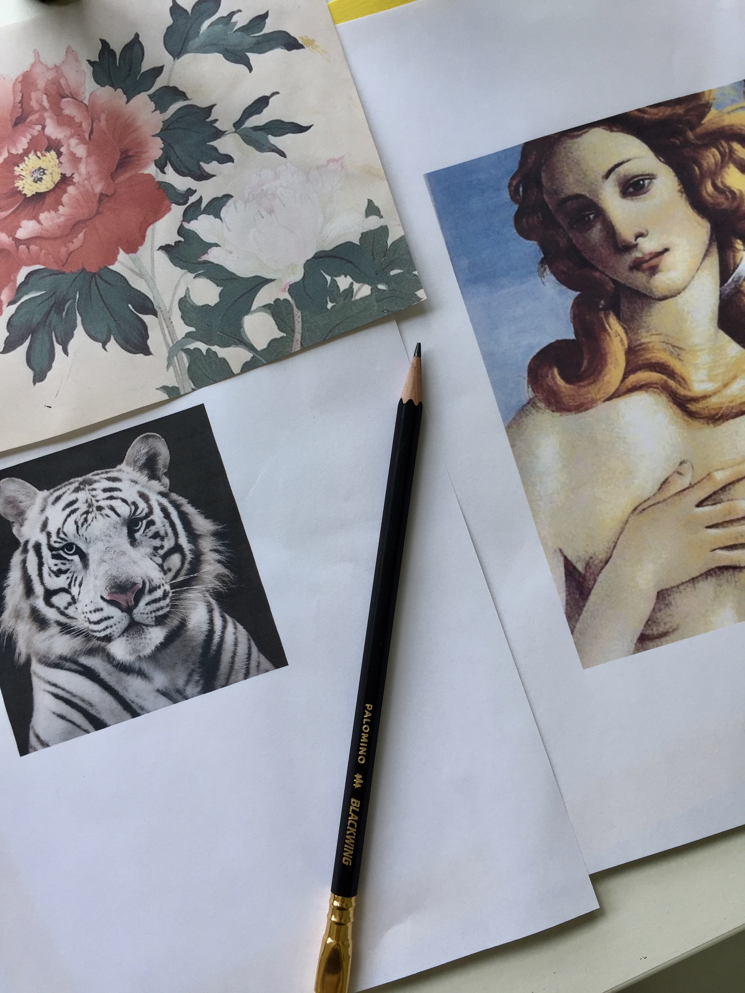 What is more endearing than an animal dressed up as a human? Maybe a child dressed as an animal, either way I love seeing personified animals especially in art. For this exercise you will need to find a beloved animal and an idea of how you want to personify that animal. I found a beautiful picture of a tiger and merged it with the goddess Venus and a peony on top.