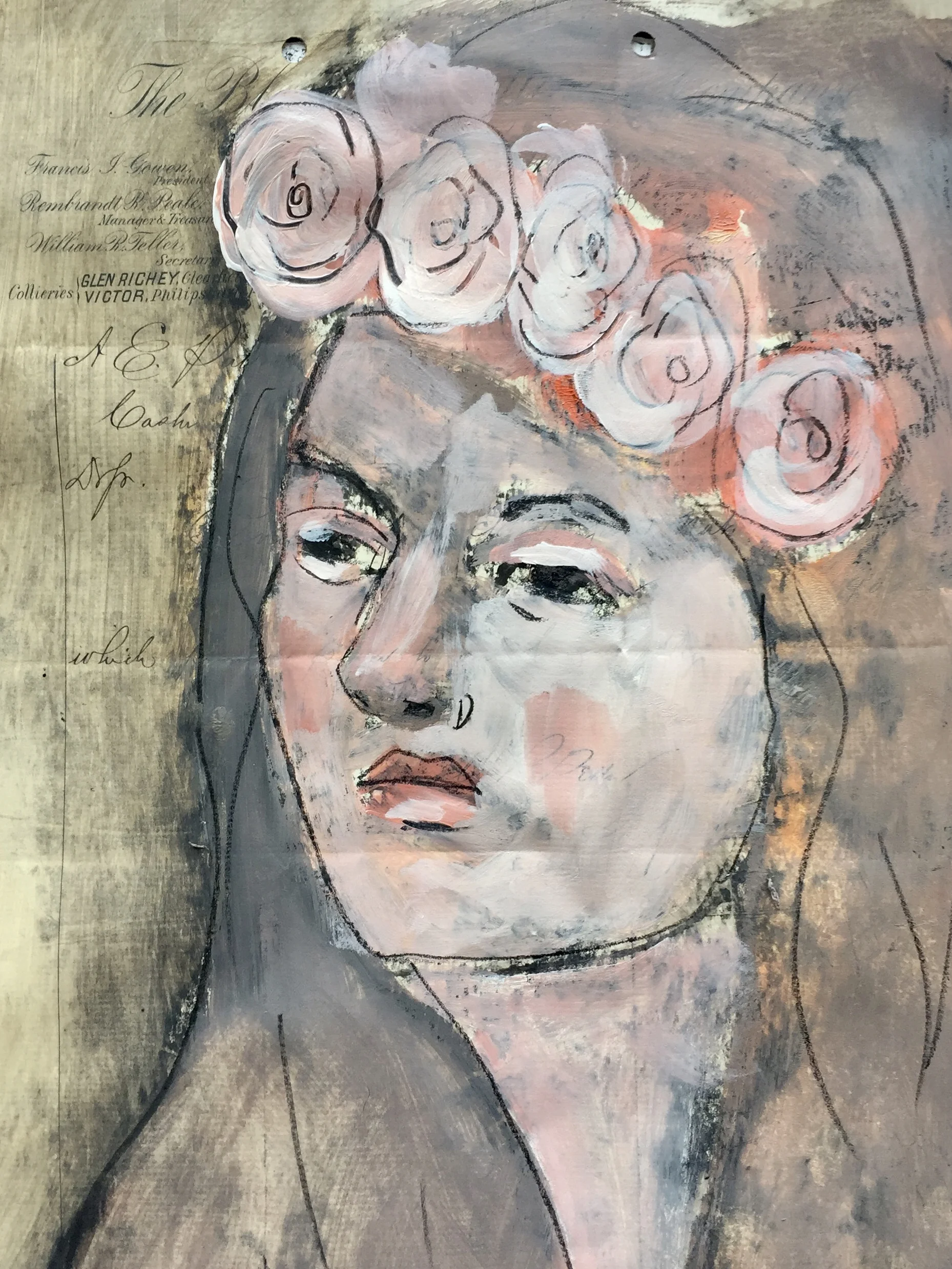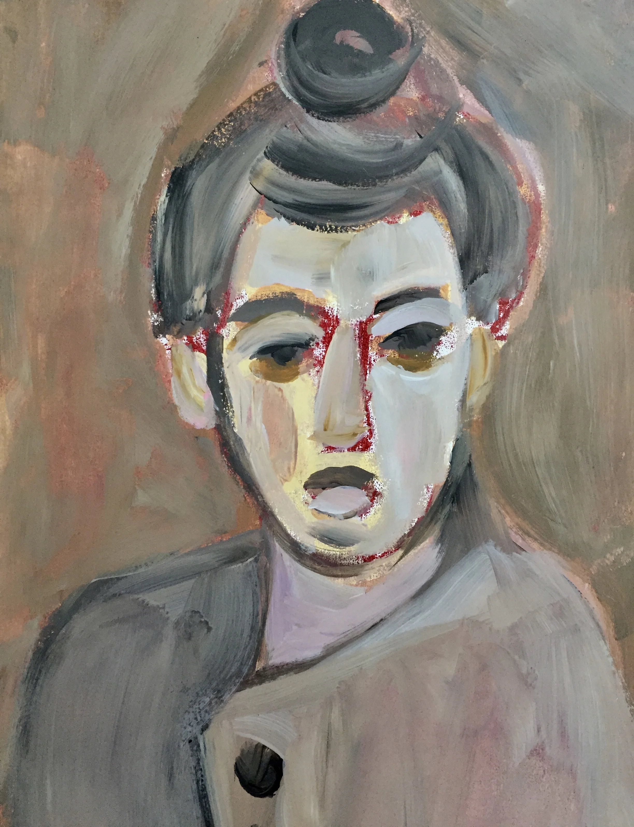 Acrylics used: Light Magenta, Raw Umber, Yellow Ochre, Titanium White