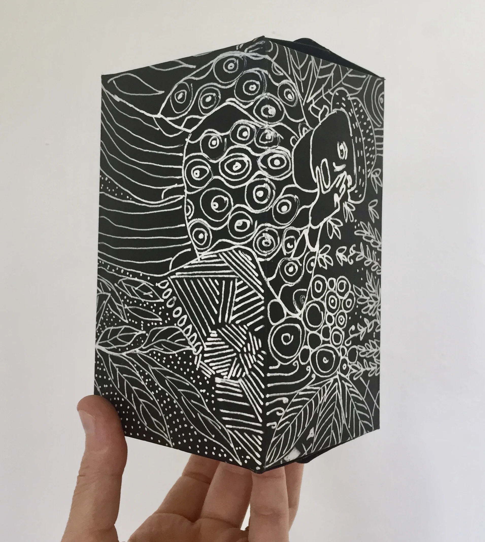 I wanted to create a simple way to use those boxes as a substrate, by adding two layers of gesso I did just that! I then used a white gel pen to add designs all over the box. You could use a gel pen or paint.