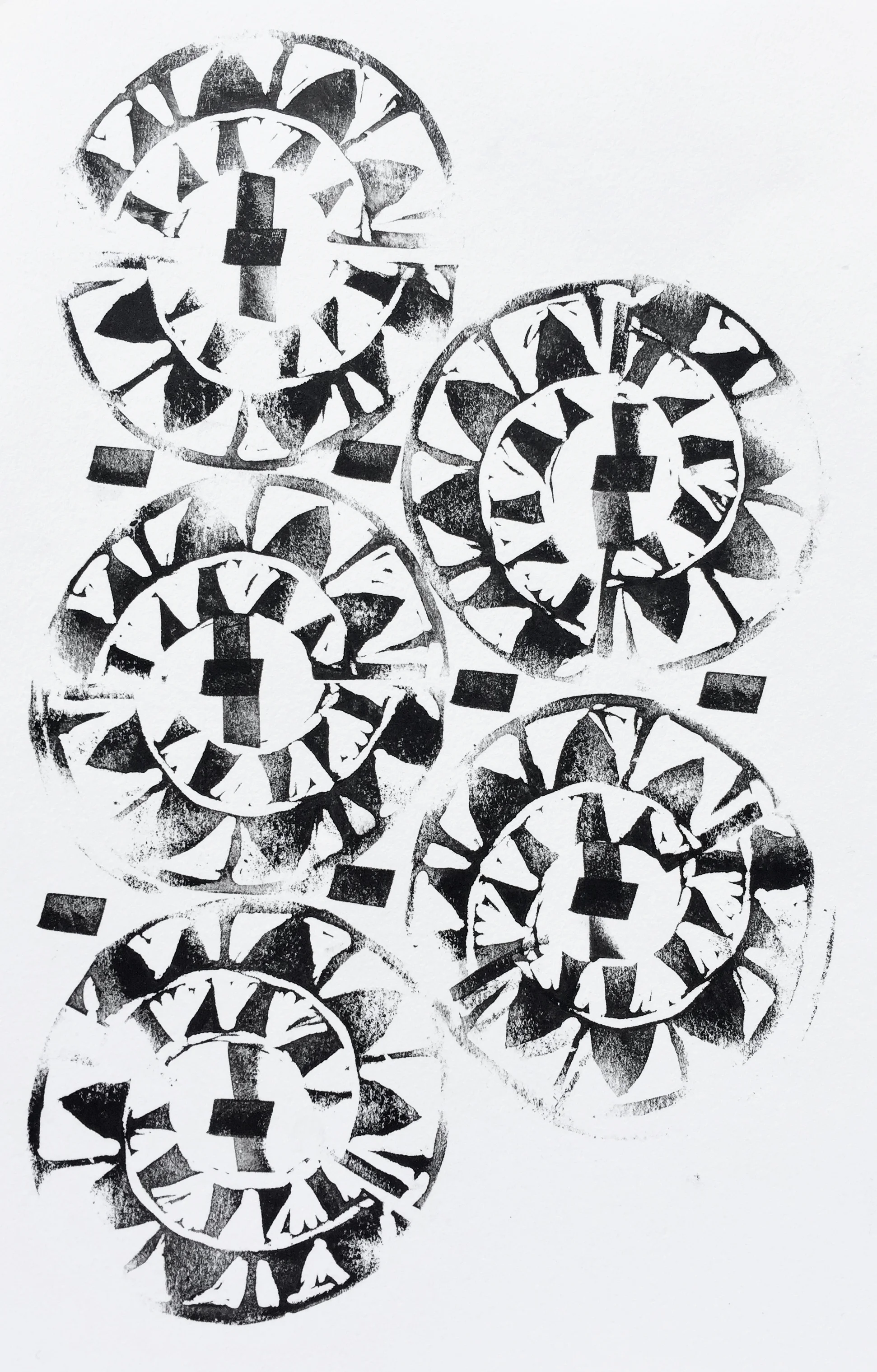 Start with a simpler design, something that can create a pattern by stamping multiple times.