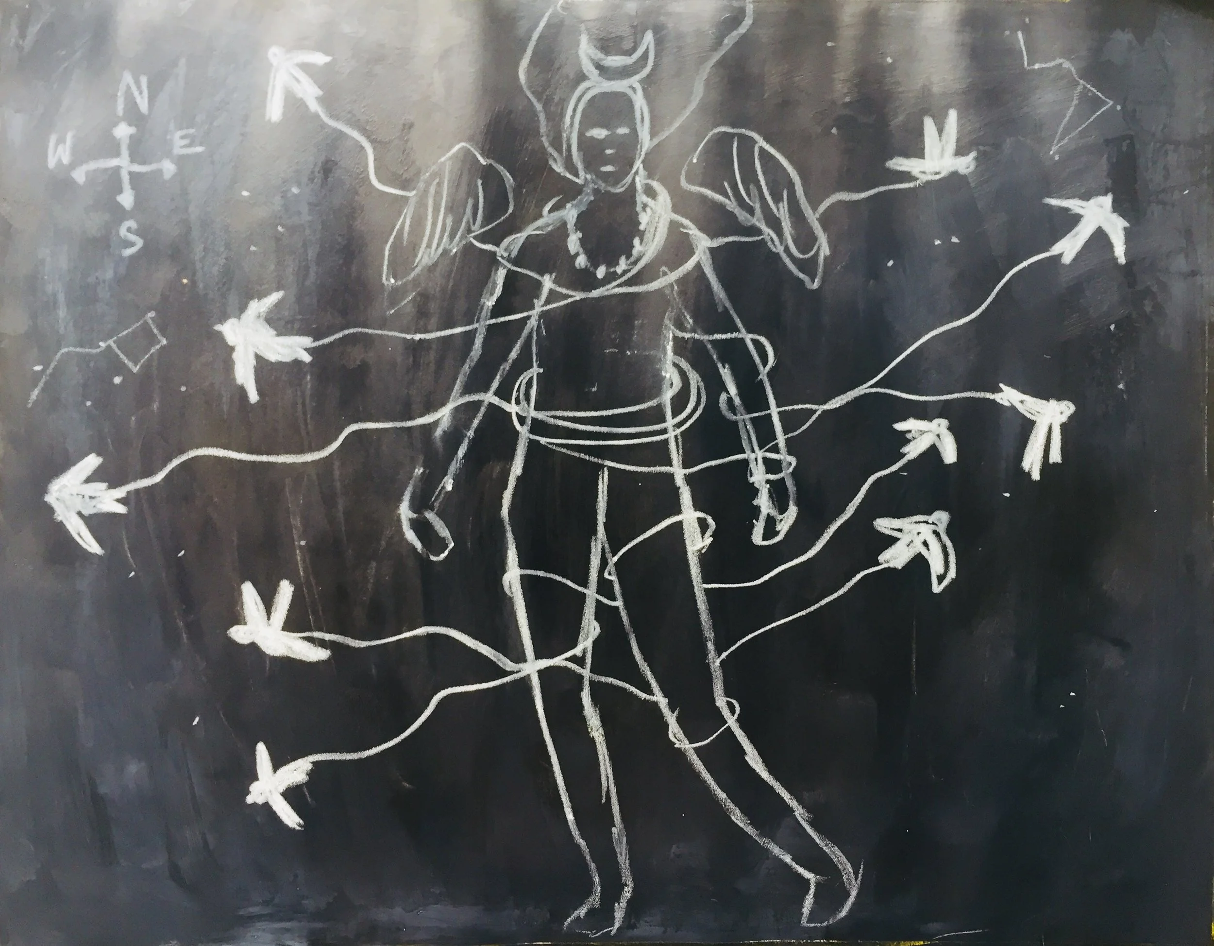 We are going to dive deep for this lesson and create a piece of work that expresses something we are going through, something we are immersed in, or something we experienced in real life or in a dream or meditation. Use imagery in your piece that symbolizes what you are trying to convey through visuals. For example: I wanted to express my feelings I had during a recent meditation, where I was suspended by all the things that I have attached myself to. I used white birds for each of these attachments, although I could have easily used other imagery as the symbols of attachment, like an anvil, or a car, a house or people...etc. I wanted to keep it peaceful and show a lightheartedness or willingness to let go of the things that are keeping me suspended. I then wanted to add a pair of wings that were hovering above, waiting for the birds to be released, so the wings could become part of me when I was ready to fly off in my chosen direction. I added the moon to symbolize enlightenment and eternity. I added stars and constellations to symbolize a map of sorts to guide me on my way.