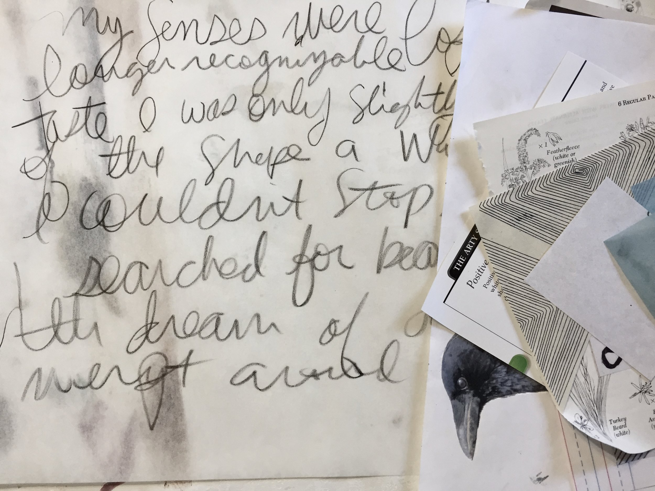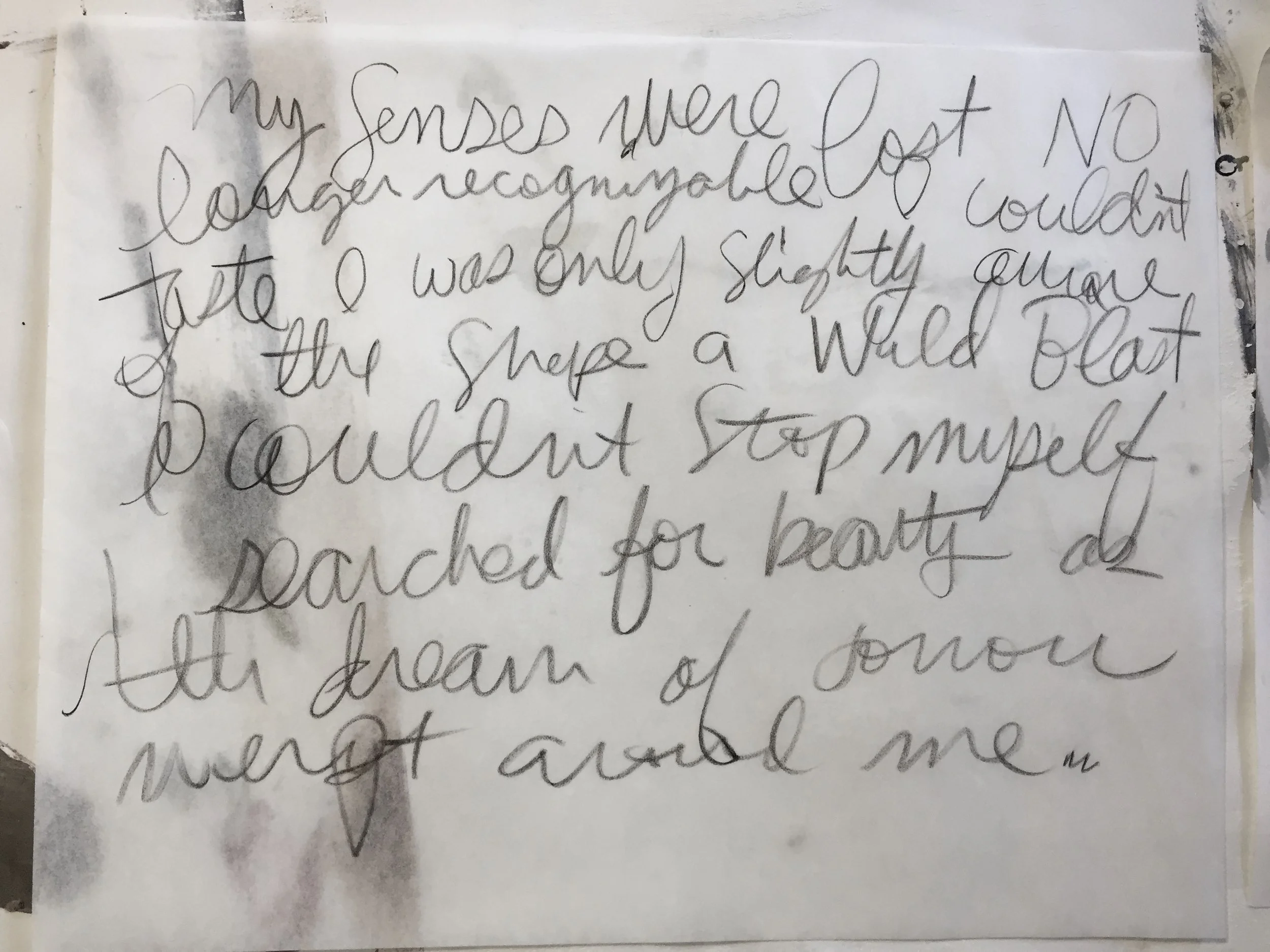 Write out your poem on tracing paper (or any paper if you don't want it to be translucent). I used a charcoal pencil to write out mine.