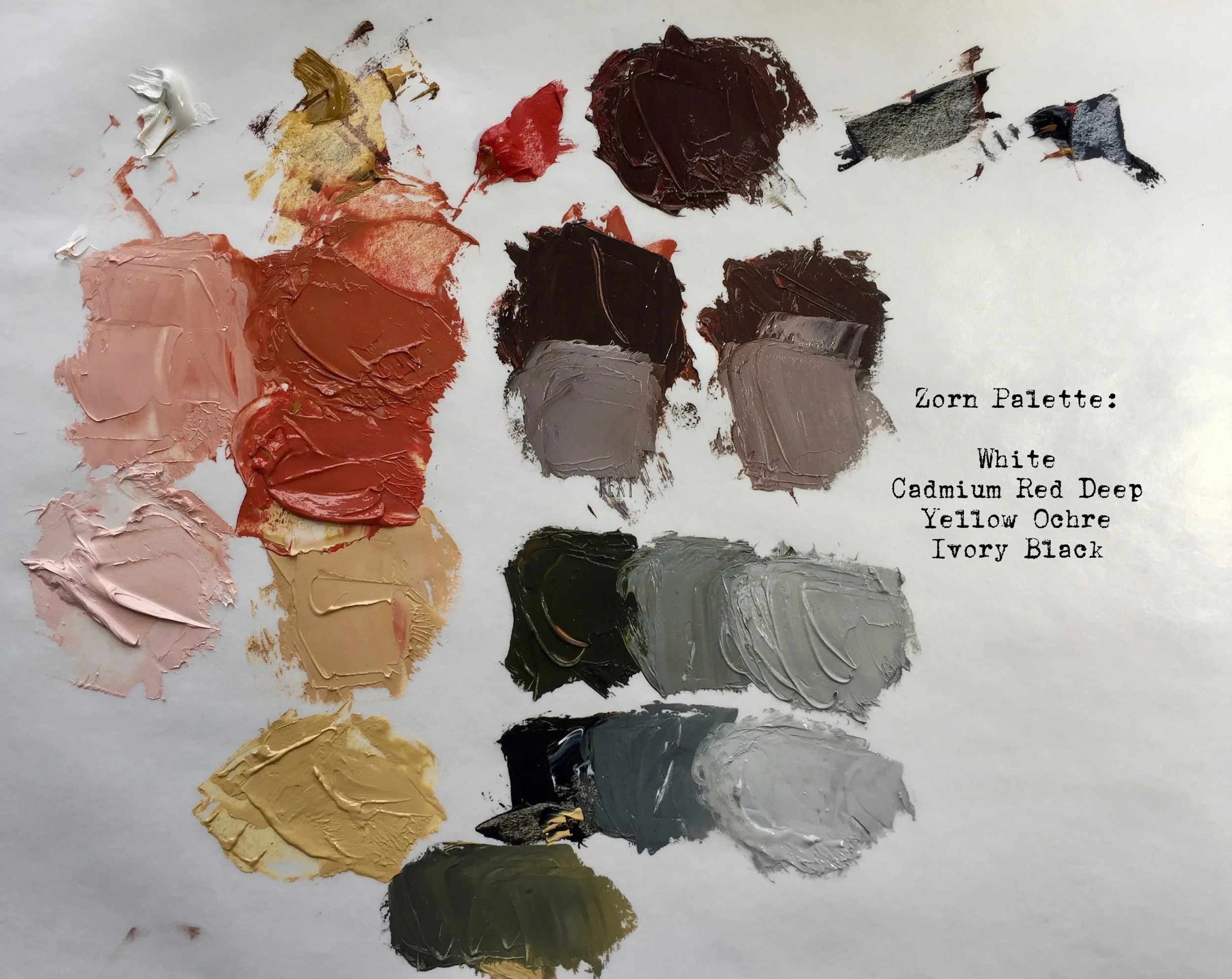 Anders Zorn, a well known Swedish painter, created this specific palette that has grown in popularity over the years. It is especially nice for painting portraits, but can be used for any subject matter. It is similar to using the primary colors, but with more muted colors.